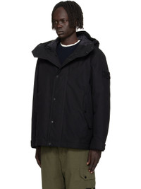 PrimaLoft®-insulated organic cotton canvas parka. · Windproof and water-repellent · Bungee-style drawstring at brimmed hood · Press-stud throat guard at stand collar · Two-way zip closure and press-stud placket · Flap pockets at waist · Detachable felted logo patch at sleeve · Adjustable press-stud tab at cuffs · Patch pocket at interior · Full quilted satin lining Supplier color: Black Body: 100% organic cotton. Fill: 100% polyester. Lining: 100% polyamide. Made in Albania 252828M178016
