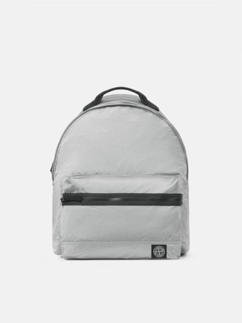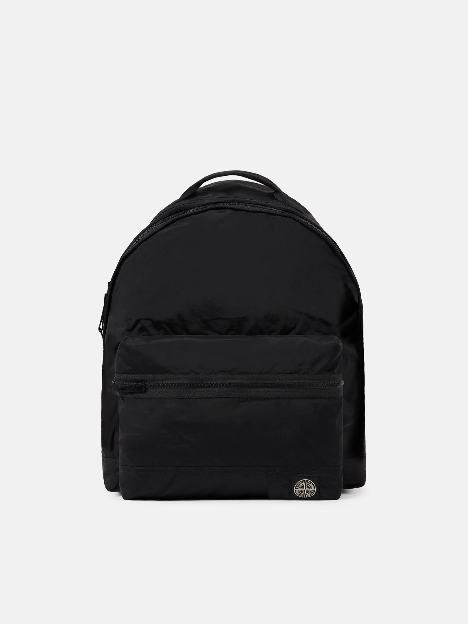 Backpack in Nylon Metal made using ECONYL® regenerated yarns with a polyurethane coating, featuring a front zipper pocket, padded back, and adjustable padded straps. FABRIC RESEARCH AND TREATMENT Backpack in Stone Island’s Nylon Metal fabric with polyurethane coating. The evolution of this iconic fabric sees the use of ECONYL® regenerated yarns: the life-ended nylon, pre- and post-consumer, is recycled with a complex depolymerization process to create this fiber that features the same intrinsic characteristics of nylon from fossil raw material. STYLE AND FIT Front bellows pocket with zipper and Compass logo patch. Padded back. Internal pocket and second smaller snap pocket. Nylon tape top handle. Adjustable padded straps. Top two-way zipper fastening. COMPOSITION AND CARE External Fabric: 100% Polyamide / Nylon Coating: 100% Polyurethanic Resin Lining: 100% Polyamide / Nylon
