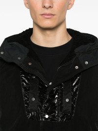 Panama-weave jacket Highlights - Black - Panama weave - Panelled design - Garment dyed - Front press-stud fastening - Lacquered finish panel - Classic hood - Funnel neck - Long raglan sleeves - Signature detachable compass badge - Press-stud fastening cuffs - Two chest welt pockets - Two front flap pockets - Internal patch pocket - Authenticity qr code - Fleece lining - Straight hem Imported Composition Outer: Polyamide 100%, Synthetic Resin 100% Lining: Polyamide 100%, Cotton 60%, Polyester 40% SIZE & FIT Model measurements Height 6 ft 2 in(1.87 m) Bust/Chest 38.97 in(99 cm) Hips 37.99 in(96.5 cm) Waist 29.52 in(75 cm) Measurement CHEST 43.3 in(110 cm) LENGTH 26.77 in(68 cm) WAIST 42.51 in(108 cm) SLEEVE LENGTH 32.28 in(82 cm) FittingInformation Designed for a relaxed fit, this piece allows for comfort and movement when worn Made from a midweight non-stretch fabric Washing instructions Machine Wash
