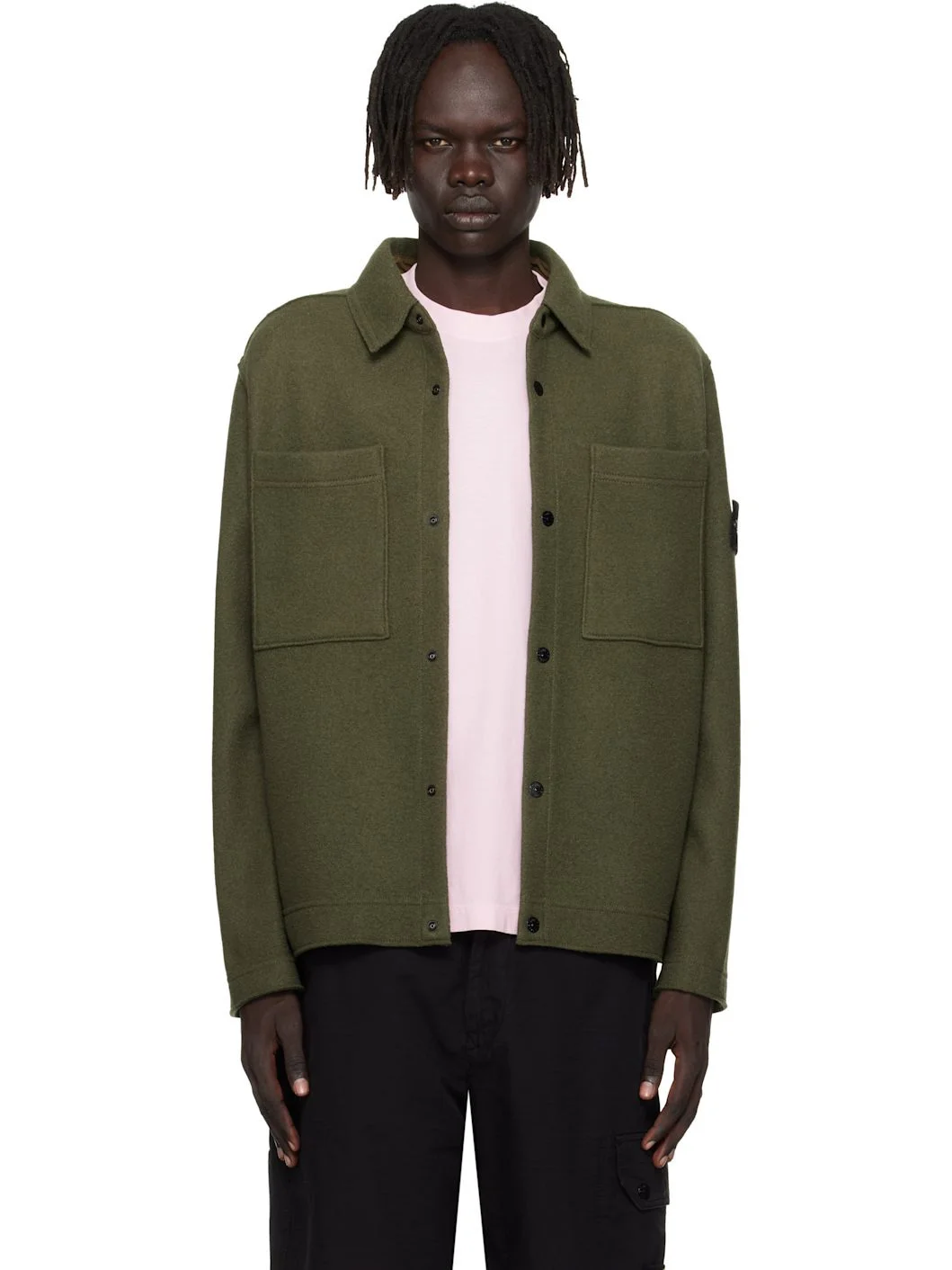 12-gauge virgin wool felt overshirt. · RWS-certified virgin wool · Spread collar · Press-stud closure · Patch pockets at chest · Detachable felted logo patch at sleeve Supplier color: Military green 100% virgin wool. Made in Romania 252828M192001