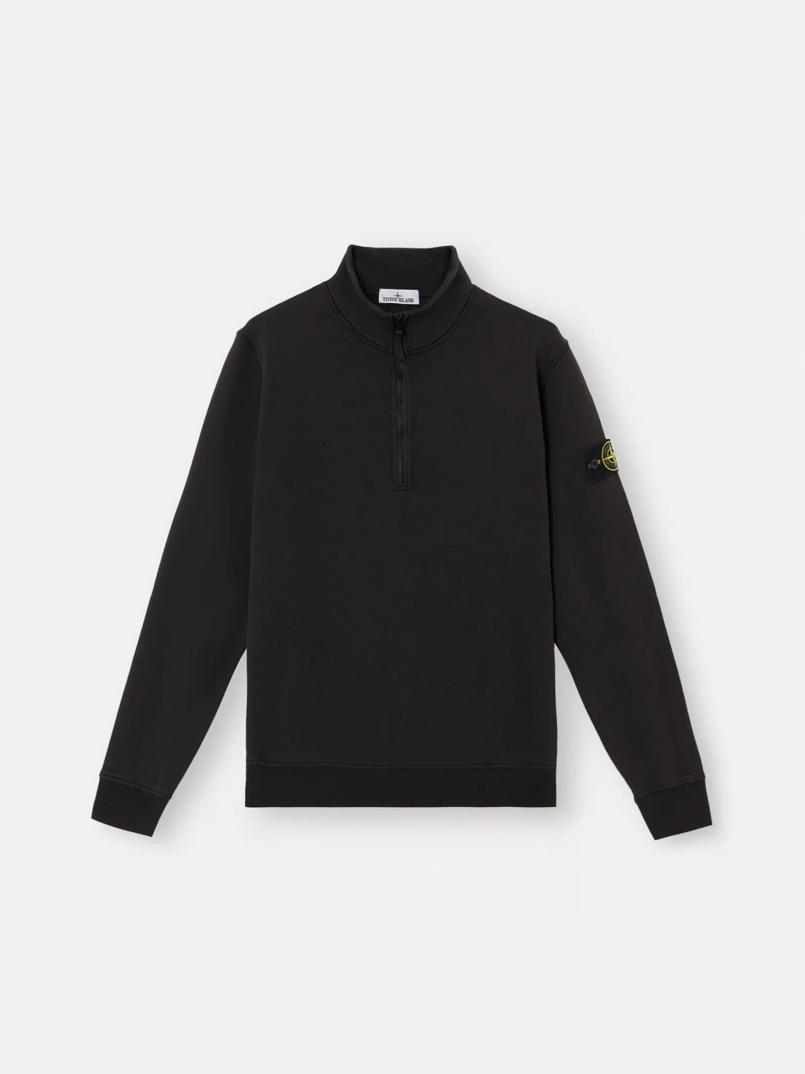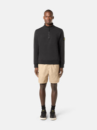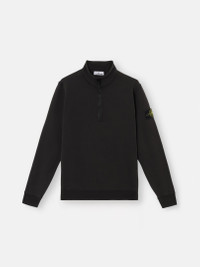 Sweatshirt in organic cotton fleece with zipper-fastened standing collar, featuring finely ribbed lining, patch pockets, and overlock seams. Garment dyed. FABRIC RESEARCH AND TREATMENT Half-zipper sweatshirt in organic cotton fleece. Garment dyed. STYLE AND FIT Standing collar with finely ribbed lining and zipper fastening. Slanted patch pockets. Stone Island badge on the left sleeve. Overlock seams. Ribbed cuffs and bottom band. Regular fit. COMPOSITION AND CARE External Fabric: 100% Cotton. Ribbing: 97% Cotton 3% Elastane / Spandex