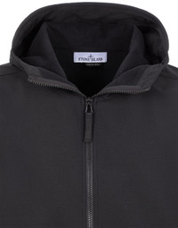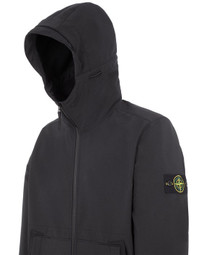 FABRIC RESEARCH AND TREATMENT SOFT SHELL-R_e.dye® TECHNOLOGY: Hooded blouson in a 3-ply performance material with an 8000 MM water column. The polyester stretch canvas outer face is woven with yarns using e.dye® Waterless Color System™ technology, the innovative yarn color saturation system which reduces by 85% the use of water and by 90% the chemicals used in the dye process. The fabric is laminated to a breathable, water- and wind-proof inner membrane. The material structure lends great flexibility and comfort. STYLE Protective hood with visor lined in Nylon Metal; horizontal drawstring. Patch pockets, with double pocket bag, slanting entrances, the second with Nylon Metal flap and hidden zipper fastening. Stone Island badge on the left sleeve. Ribbed cuffs and bottom band. Two-way zipper fastening. COMPOSITION OUTSIDE: 92% Polyester, 8% Elastane / Spandex - Membrane: Polyurethane INSIDE: 100% Polyester GARMENT DETAILS: 100% Polyamide / Nylon
