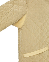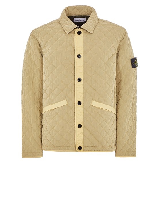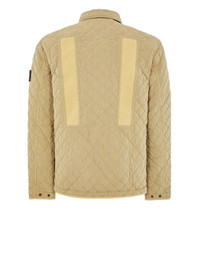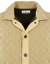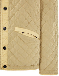 FABRIC RESEARCH AND TREATMENT 50 FILI QUILTED-TC: Lightly padded jacket made of a lightweight brushed nylon cotton canvas. The fabric is quilted with an internal padding layer. The finished piece undergoes an elaborate double-dye procedure, providing different color shades and intensity to the garment. The addition of a special PFC-free agent to the dye recipe makes the garment anti-drop. STYLE Slanting hand pockets with diagonal cotton trimming; two hidden snap fastenings. Stone Island badge on the left sleeve. Tightening snaps at cuffs. Ribbed cotton jersey inlay under the sleeves. Two ribbed cotton jersey vertical band inlays on back. Snap fastenings on diagonal cotton trimming. COMPOSITION GARMENT: 79% Cotton, 21% Polyamide / Nylon TRIM: 97% Cotton, 3% Elastane / Spandex INSIDE COLLAR: 100% Polyamide / Nylon Lining: 100% Polyamide / Nylon Padding: 100% Polyester
