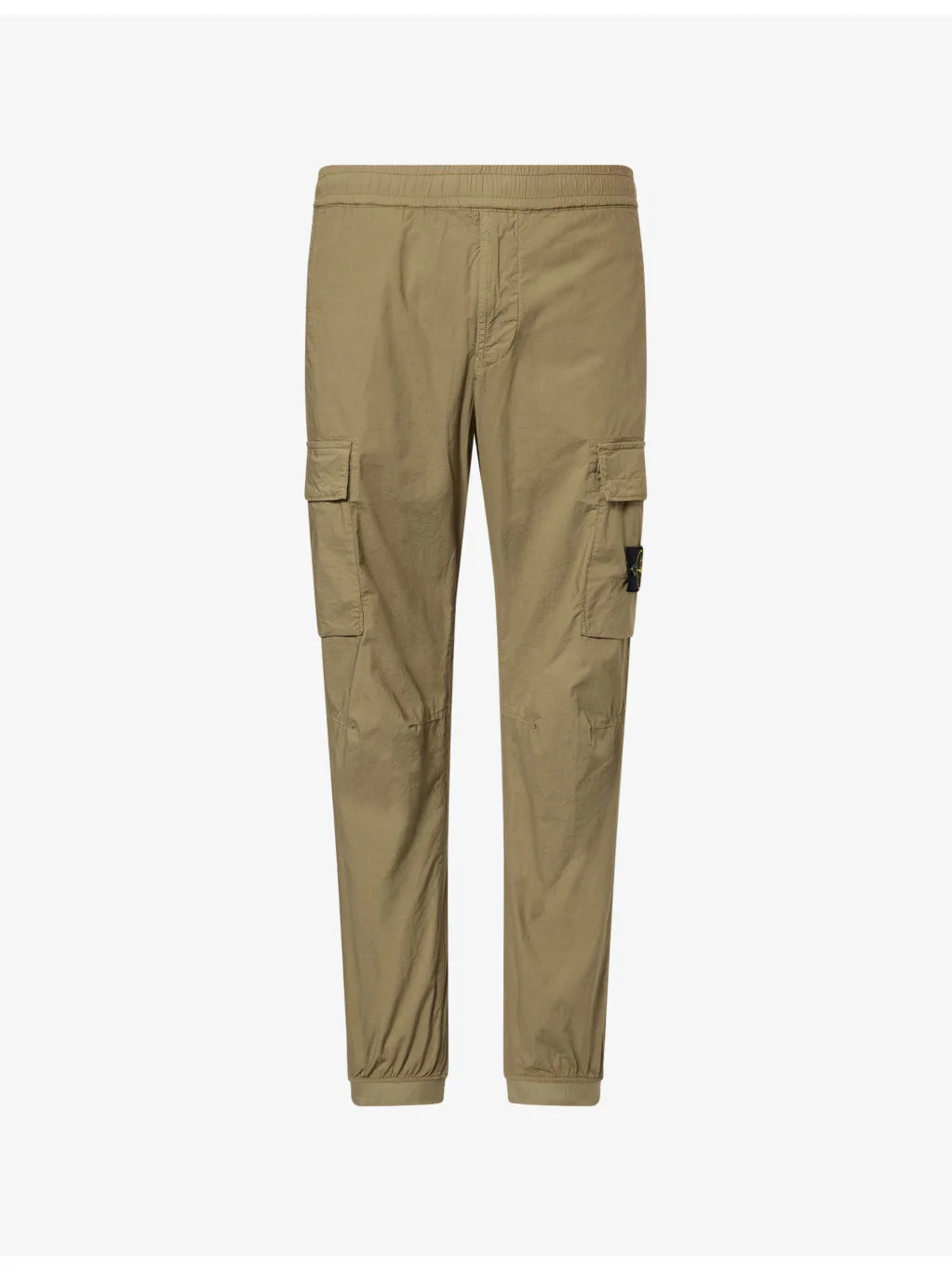 PRODUCT DETAILS - Stone Island stretch-cotton trousers - 97% cotton, 3% elastane - Regular fit, mid-rise, tapered leg, drawstring elasticated waistband, two welt pockets and buttoned brand patch at front, concealed zip fastening at front, buttoned pocket at sides and back, ribbed cuffs - Machine wash at 30°C - Size UK 30: rise 12in / 32cm, inside leg 28in / 73cm, leg opening 10in / 26cm - Model is 6ft 2in/1.88m and wears a size UK 30 - Lightweight, stretchy Ref: R04564876