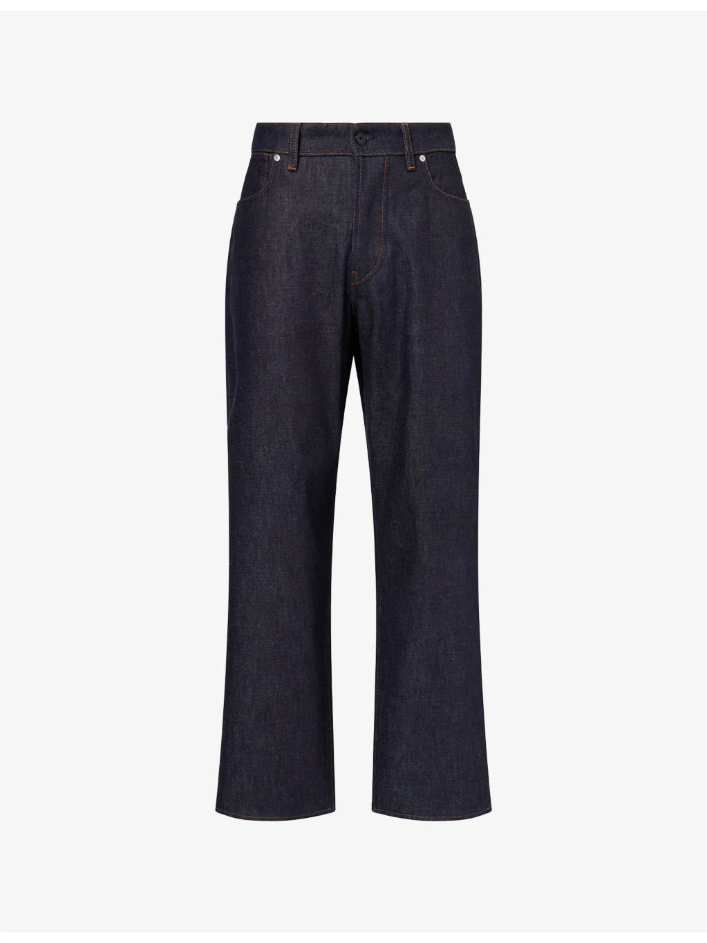 PRODUCT DETAILS - Stone Island denim jeans - 100% cotton - Button and button-fly fastenings at front - Relaxed fit, mid-rise, straight leg, belt loops, five pockets - Machine wash at 30°C - Made in Romania - Size UK 32: rise 12.5in / 32cm, inside leg 30.5in / 78cm, leg opening 19in / 48cm - Model is 6ft 2in/1.88m and wears a size UK 32 - Midweight, non-stretch Ref: R04548913
