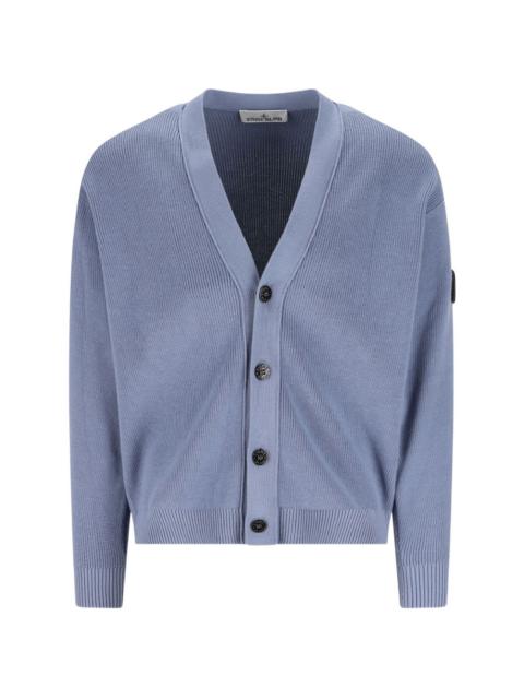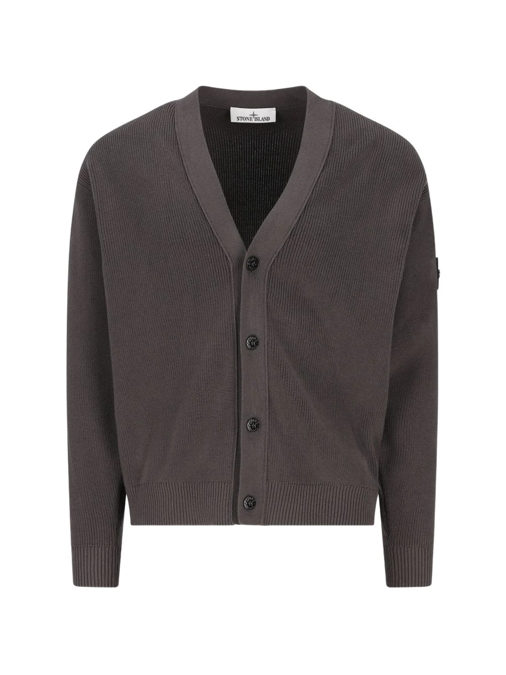ribbed button-fastening cardigan Highlights - Grey - Ribbed knit - V-neck - Button fastening - Logo patch to the front - Long sleeves Imported Composition Cotton 100% Washing instructions Read Manufacturer Guidelines