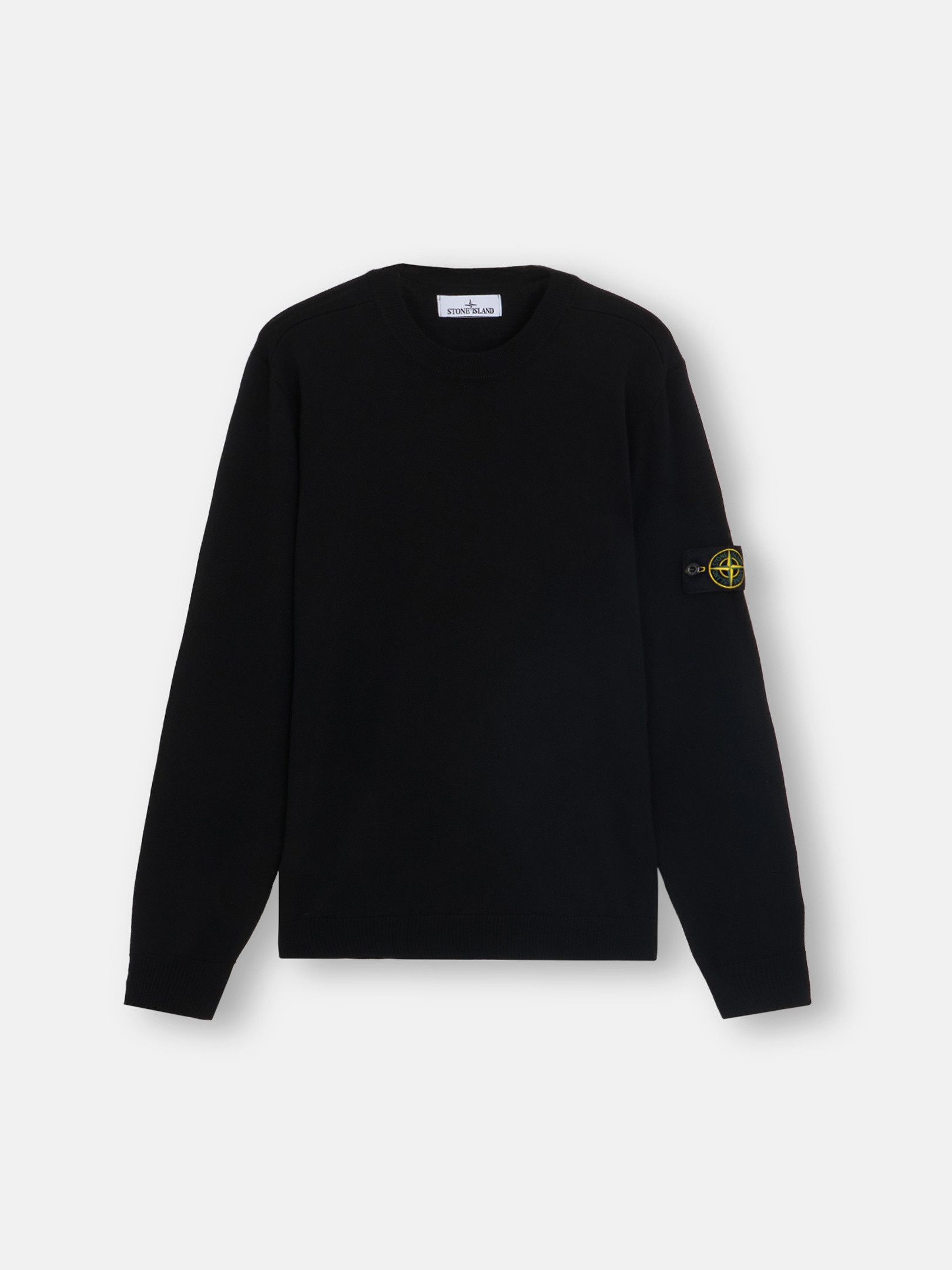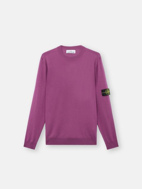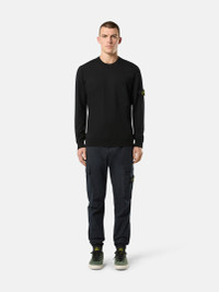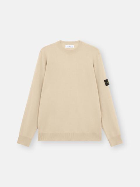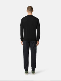 Stocking stitch knit crewneck sweater made from RWS-certified wool, featuring a ribbed collar, cuffs, and bottom band. 14 gauge. FABRIC RESEARCH AND TREATMENT Crewneck knit in RWS-certified pure light wool. Stocking stitch. 14 gauge. The Responsible Wool Standard (RWS) describes and certifies animal welfare and land management practices in wool production and tracks the certified material from farm to final product. STYLE AND FIT Ribbed collar. Stone Island badge on the left sleeve. Ribbed cuffs and bottom band. Regular fit. COMPOSITION AND CARE 100% Virgin Wool