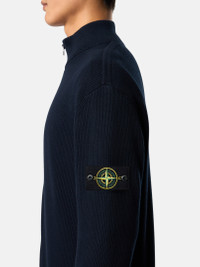 Zipper-up sweater in ribbed soft organic cotton, featuring a stand collar, reverse stitch inserts, finely ribbed bands, and ribbed trims. Gauge 12. FABRIC RESEARCH AND TREATMENT Knit zipper-up sweater in ribbed soft organic cotton. Gauge 12. STYLE AND FIT Ribbed stand collar. Reverse stitch triangular inserts and finely ribbed bands on back shoulders. Stone Island badge on left sleeve. Ribbed cuffs and bottom band. Two-way zipper fastening. Regular fit. COMPOSITION AND CARE 100% Cotton