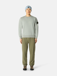 Crewneck sweatshirt in organic cotton fleece, featuring raglan sleeves, overlock seams, ribbed trims, and a lunette detail under the back neckline. Midweight. Garment dyed. FABRIC RESEARCH AND TREATMENT Crewneck sweatshirt in organic cotton fleece. Midweight. Garment dyed. STYLE AND FIT Ribbed neckline. Lunette under back neckline with internal reinforcement. Raglan sleeves on back. Stone Island badge on left sleeve. Ribbed cuffs and bottom band. Overlock stitching at seams. Regular fit. COMPOSITION AND CARE External Fabric: 100% Cotton Ribbing: 99% Cotton 1% Elastane / Spandex