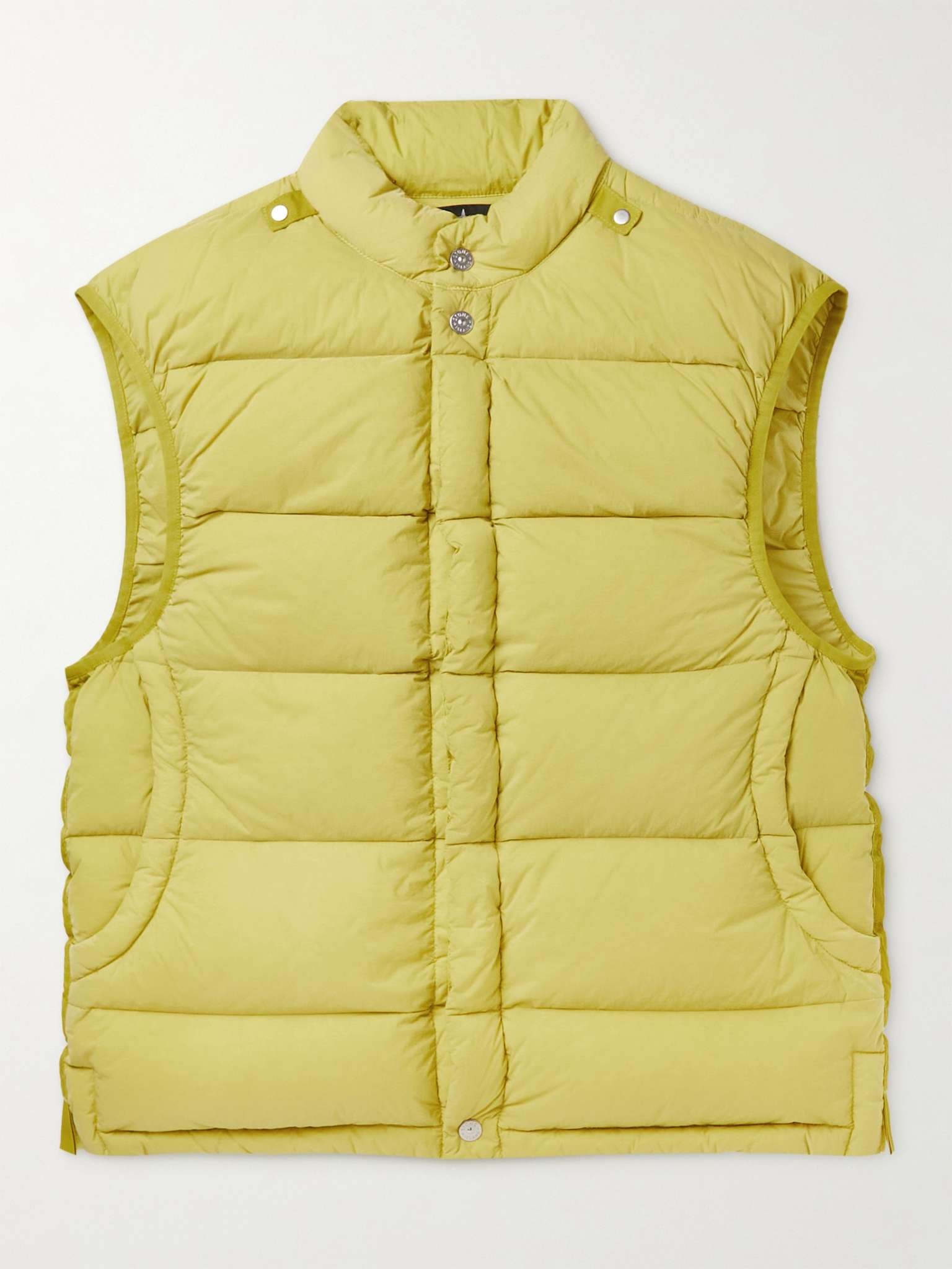 Stone Island began its 'Shadow Project' line so it could have a place to push its fabric innovations to new levels. Part of the FW22 collection, this gilet is constructed from quick-drying shell and padded with down. The yellow hue is garment-dyed for a vibrant, even finish. Size & Fit - Fits true to size. Take your normal size - The model is wearing a size larger to achieve a looser fit across the shoulders - This gilet is designed for a slightly loose fit - Quilted, non-stretchy fabric - Model wears a M - Model measures: chest 36"/ 92cm, height 6'2"/ 188cm Details & Care - Yellow shell and webbing - Snap fastenings - 86% polyamide, 14% elastane; trim: 100% polyamide; filling: 90% down, 10% feather (Duck) - Machine wash - This item has been imported