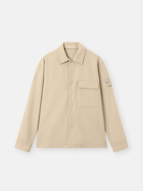 Overshirt in a carded wool nylon flannel with a chest pocket, internal pocket, snap cuffs, snap fastening, and nylon lining. FABRIC RESEARCH AND TREATMENT Ghost pieces, derived from the concept of camouflage, are totally monochromatic. Even the Stone Island badge is created in a special monocolor version to blend in with the garment. Overshirt made of a carded wool and nylon flannel. Nylon lining. STYLE AND FIT Patch pocket on left chest with snaps under flap. Internal standing pocket with snap that is visible on the outside. Yoke on back. Stone Island Ghost badge on left sleeve. Snap at cuffs. Snap fastening. Comfort fit. COMPOSITION AND CARE External Fabric: 80% Virgin Wool 20% Polyamide / Nylon. Lining: 100% Polyamide / Nylon