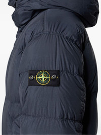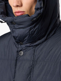 Crinkled padded jacket Highlights - Navy blue - Quilted design - Hooded neckline - Snap button fastening - Patch logo - Zipped pockets Imported Composition Polyamide 100% Washing instructions Read Manufacturer Guidelines