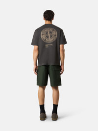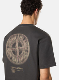 Short-sleeve T-shirt in combed organic cotton jersey, featuring Stone Island logo on the chest and Compass with raised details on the back. Garment dyed. FABRIC RESEARCH AND TREATMENT Short-sleeve T-shirt in combed organic cotton jersey with ‘Bleeding Numbers Compass’ print. Garment dyed. STYLE AND FIT Ribbed neckline. Stone Island logo print on chest. Large print of stylized Stone Island Compass logo with raised details on back. Regular fit. COMPOSITION AND CARE Garment: 100% Cotton. Ribbing: 100% Cotton