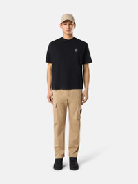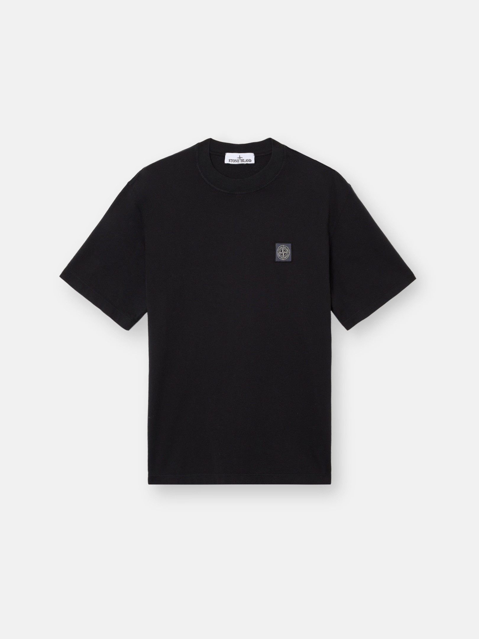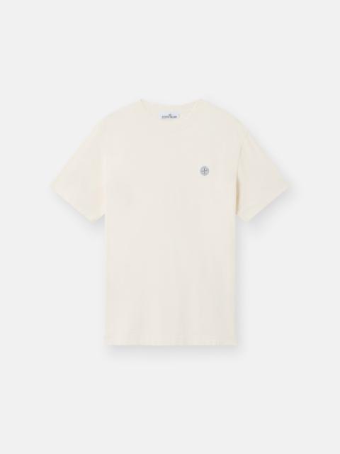 Short-sleeve T-shirt made from combed cotton jersey, featuring a ribbed neckline and monocolor Compass patch on the chest. Garment dyed. FABRIC RESEARCH AND TREATMENT Short-sleeve T-shirt in combed cotton jersey. Garment dyed. STYLE AND FIT Ribbed neckline. Stone Island Compass logo patch. Regular fit. COMPOSITION AND CARE Garment: 100% Cotton. Ribbing: 94% Cotton 6% Elastane / Spandex