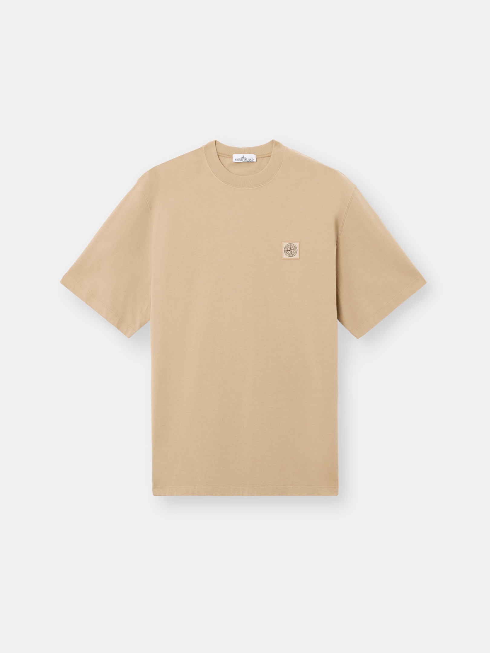 Short-sleeve T-shirt made from combed cotton jersey, featuring a ribbed neckline and monocolor Compass patch on the chest. Garment dyed. FABRIC RESEARCH AND TREATMENT Short-sleeve T-shirt in combed cotton jersey. Garment dyed. STYLE AND FIT Ribbed neckline. Stone Island Compass logo patch. Regular fit. COMPOSITION AND CARE Garment: 100% Cotton. Ribbing: 94% Cotton 6% Elastane / Spandex