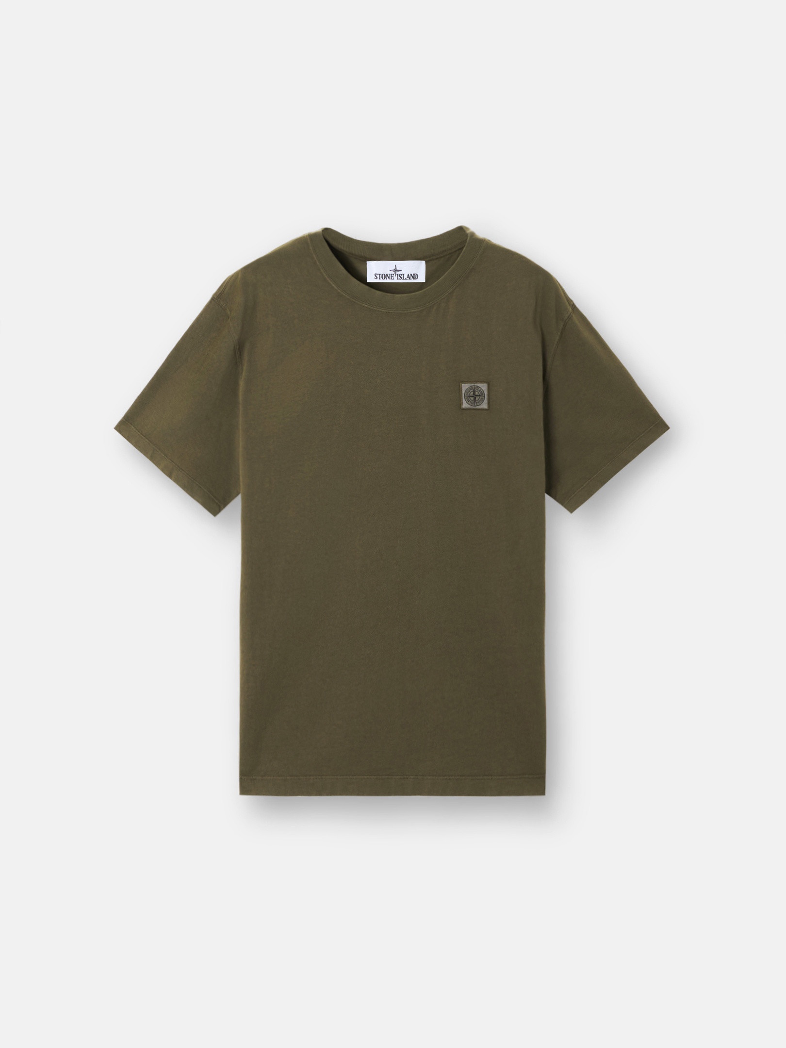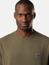 Short-sleeve T-shirt made from combed cotton jersey, featuring a ribbed neckline and monocolor Compass patch on the chest. Garment dyed. FABRIC RESEARCH AND TREATMENT Short-sleeve T-shirt in combed cotton jersey. Garment dyed. STYLE AND FIT Ribbed neckline. Stone Island Compass logo patch. Regular fit. COMPOSITION AND CARE Garment: 100% Cotton. Ribbing: 94% Cotton 6% Elastane / Spandex
