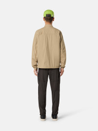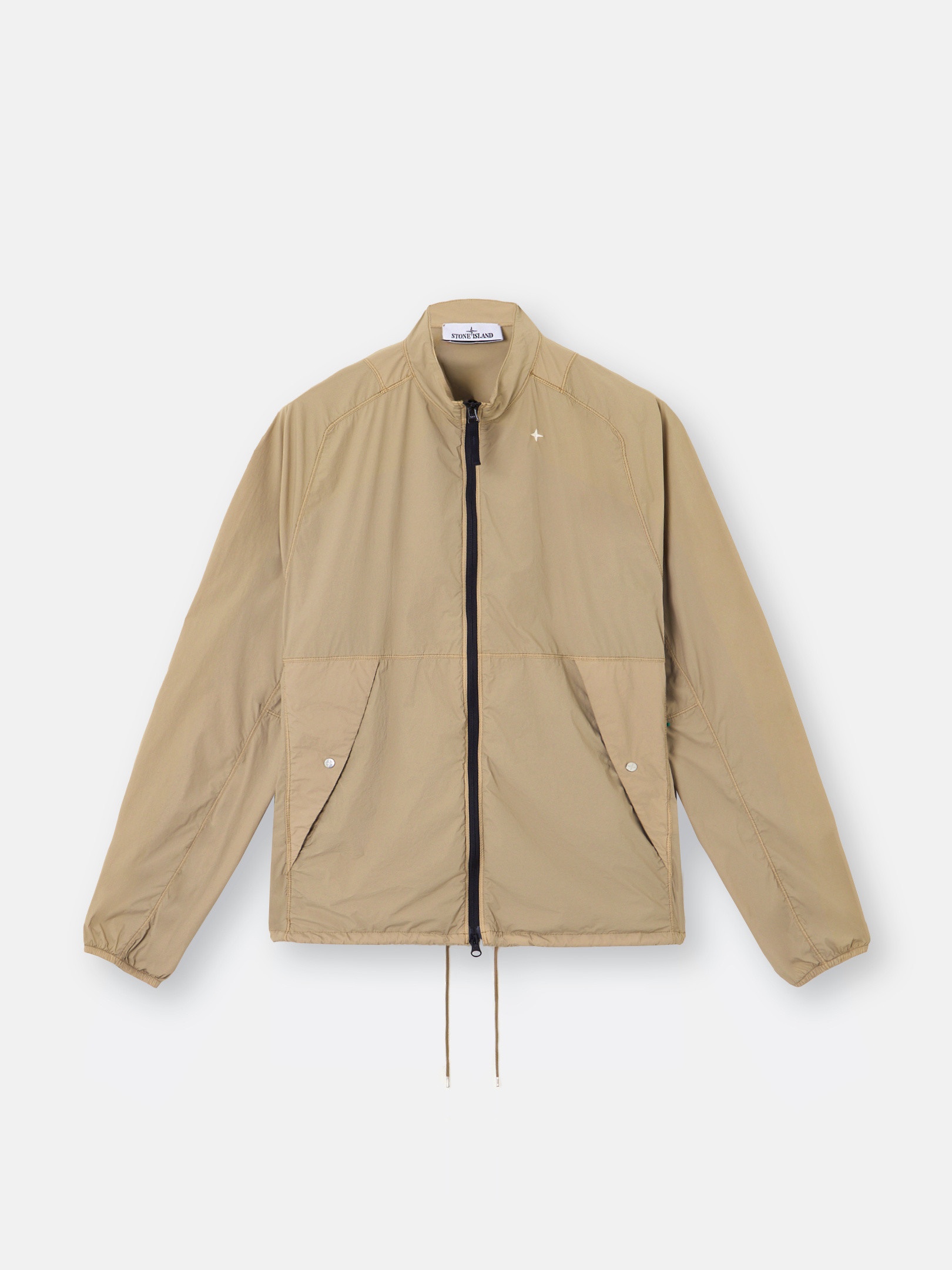Jacket in a light, high-performance fabric with a thin wind- and water-resistant coating and a hood that can be packed into a pouch under the back of the collar. Garment dyed. FABRIC RESEARCH AND TREATMENT Packable. Blouson made of a light, high-performance fabric with a clean appearance, using fine denier microfiber nylon yarns. A very thin wind- and water-resistant coating is applied to the textile base. The increased stretch component makes this fabric super comfortable. The garment dyeing process enhances the color rendering of the fabric. STYLE AND FIT Standing collar. Stone Island embroidery of small star. Raglan sleeves. Slanted hand pockets with flap and snap fastening. Under-sleeve vents. Elasticated cuffs. Yoke on back. Drawstring in bottom hem. Two-way zipper fastening. The jacket can be folded and stowed in the inner pouch under the back of the collar. COMPOSITION AND CARE External Fabric: 89% Polyamide / Nylon 11% Elastane / Spandex. Coating: 100% Polyurethanic Resin