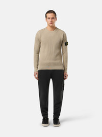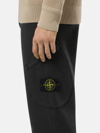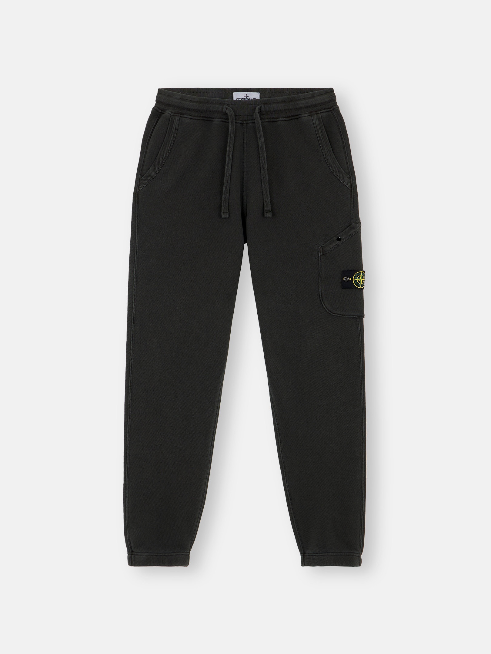 Cargo jogger pants in diagonally constructed organic cotton fleece, garment dyed with the exclusive 'OLD' treatment, creating a slightly worn and three-dimensional appearance. FABRIC RESEARCH AND TREATMENT Cargo jogger pants in diagonally constructed organic cotton fleece. Garment dyed with the 'OLD' treatment, an exclusive dyeing treatment and subsequent fading on the finished garment for a slightly worn and three-dimensional appearance. STYLE AND FIT Rounded hand pockets with ribbed cotton trim. Rounded cargo pocket on the left leg with ribbed cotton trim, snap fastening and Stone Island badge. Elasticated leg bottoms. Ribbed waistband with outer drawstring. Regular fit. COMPOSITION AND CARE 100% Cotton