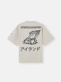Short-sleeve T-shirt in combed organic cotton jersey with print featuring the Stone Island star and Japanese characters on the chest and back. Garment dyed. FABRIC RESEARCH AND TREATMENT Short-sleeve T-shirt in combed organic cotton jersey with ‘Island’ print. Garment dyed. STYLE AND FIT Ribbed neckline. Print of Stone Island star and Japanese characters on chest. Stone Island logo print on left sleeve. Large print of island and Japanese characters on back. Regular fit. COMPOSITION AND CARE Garment: 100% Cotton. Ribbing: 100% Cotton