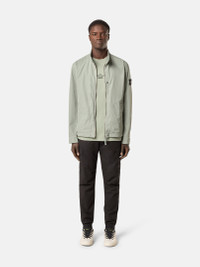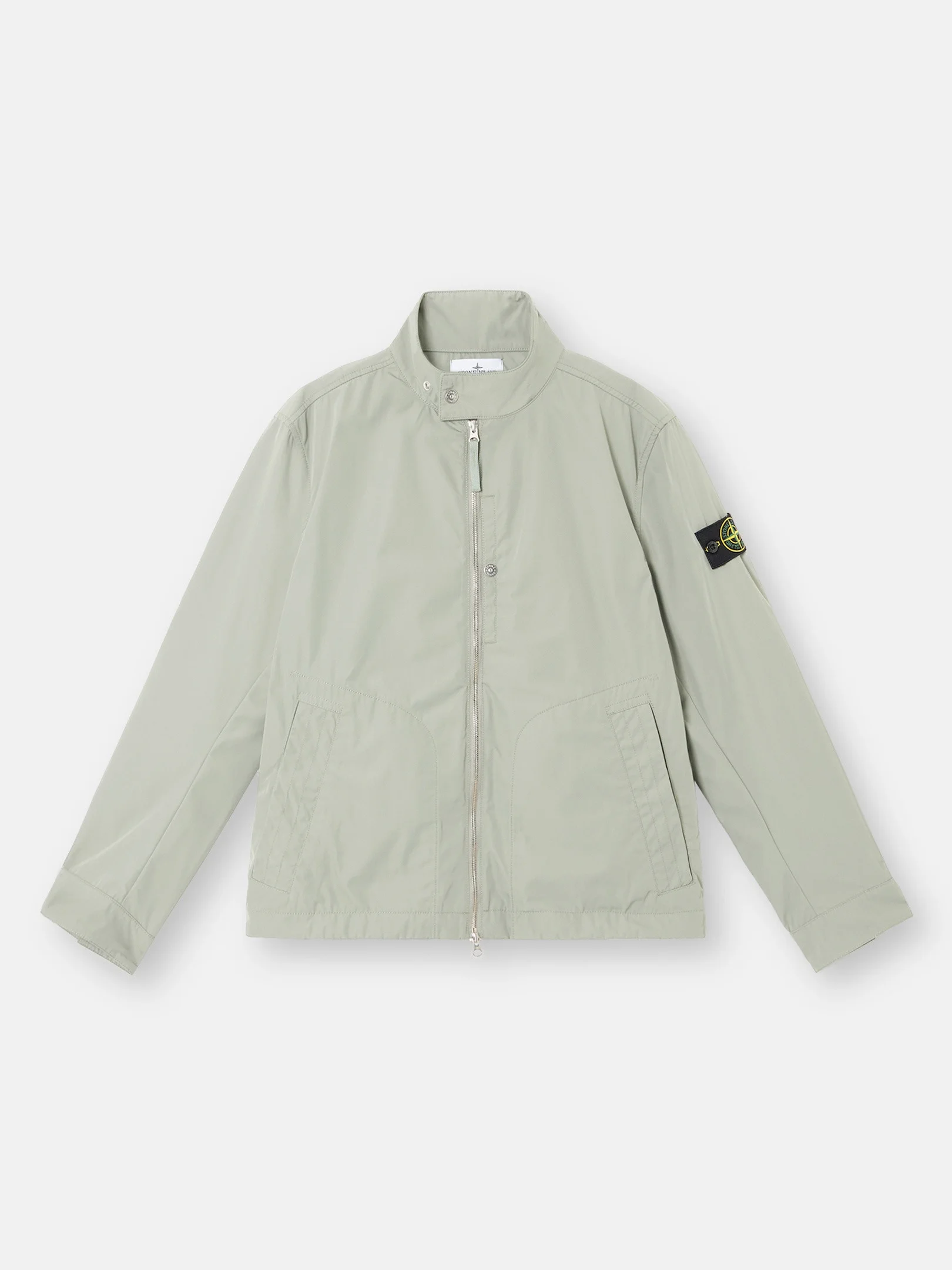 Blouson in a polyester micro twill whose spring-like structure lends a soft and comfortable texture to the fabric, featuring a standing collar with snap, back tightening straps, and two-way zipper. FABRIC RESEARCH AND TREATMENT Blouson made of a polyester micro twill featuring a spring-like, helical molecular structure. This fiber lends a soft and comfortable texture to the fabric with deep and rich colors. Treated with a PFC-free anti-drop agent. STYLE AND FIT Standing collar with snap fastening. One standing chest pocket with snap fastening. Slanted hand pockets with hidden fastening. Stone Island badge on the left sleeve. Tightening snap at cuffs. Tightening straps on sides of lower back. Two-way zipper fastening. COMPOSITION AND CARE 100% Polyester