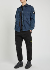 Info & Care Stone island shell overshirt Detachable designer plaque at sleeve, press-stud fastening cuffs, two press-stud fastening patch pockets at chest, wide box pleat at back, curved hem, crinkled and faded finish, internal press-stud fastening pocket Partially concealed two-way zip and press-stud fastening through front 100% polyamide Machine wash Size & Fit Length shoulder to hem: 27 inches/ 68.5cm Midweight Relaxed fit Model is 6'1"/ 185cm, chest size 38 inches and wears a size medium