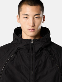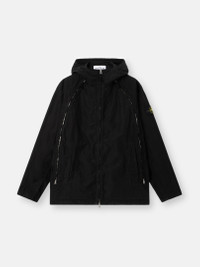 Hooded jacket in lightweight tela made with Japanese star-shaped cross-section yarns, featuring zipper gusset pockets, raglan sleeves, and two-way zipper fastening. Garment dyed with anti-drop. FABRIC RESEARCH AND TREATMENT Hooded jacket in a lightweight tela made with Japanese star-shaped cross-section polyester/polyamide yarns. The pieces are assembled and then dyed under pressure at 130°C with the addition of an anti-drop agent. During the garment dye process the heat radically transforms the material’s hand and structure. The resulting garments combine an industrial appearance with a unique feel. STYLE AND FIT Hood with drawcord. Raglan sleeves. On both sides of front, two-way zipper that extends downwards, opening onto gusset with two pockets. Standing hand pockets with snap. Eyelets under armholes. Stone Island badge on left sleeve. Tightening snap at cuffs. Drawcord at hem. Two-way zipper fastening. COMPOSITION AND CARE Garment: 68% Polyester 32% Polyamide / Nylon. Secondary Fabric: 100% Polyester