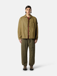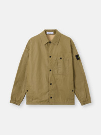 Overshirt in double-coated cotton ripstop treated with pigmented resin for a dimensional effect, featuring multiple pockets, waist cinch tabs, and snap fastening. FABRIC RESEARCH AND TREATMENT Overshirt in resin-treated cotton ripstop. The piece-dyed fabric is coated on the outer face with a double application of a special pigmented resin, creating a dimensional effect due to the overlapping with the colored base. STYLE AND FIT Patch chest pocket with snap and pleat detail. Vertical welt hand pockets with snap. Internal top-entry pockets. Back waist cinch tabs with snap. Stone Island badge on left sleeve. Elasticated cuffs. Snap fastening. Comfort fit. COMPOSITION AND CARE Garment: 100% Cotton Coating: 100% Polyurethanic Resin Lining: 100% Cotton
