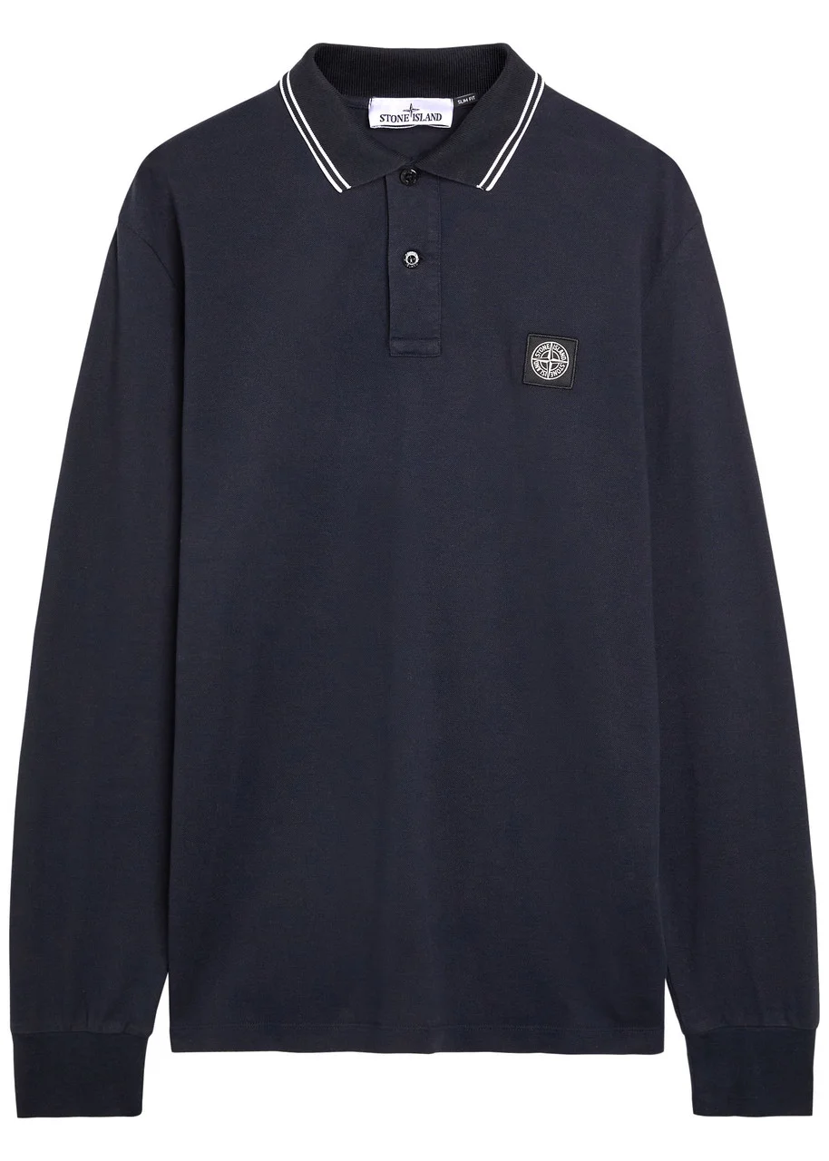 Info & Care Stone Island pique stretch-cotton polo shirt Ribbed collar with stripes, button-fastening neck, designer;plaque;at chest, side splits Slips on 95% cotton, 5% elastane Machine wash Size & Fit Length shoulder to hem: 27 inches/ 68.5cm Midweight Regular fit Model is 6'1"/ 185cm, chest size 38 inches and wears a size medium