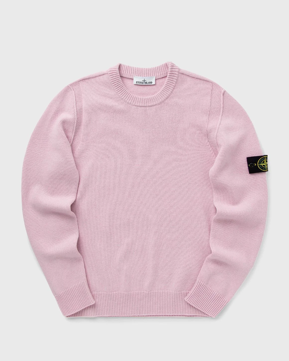 The Stone Island knitted crew neck sweater is made from lambswool with raised seams at the armholes, left-knitted bands and ribbed trims. - Gauge 7 - Ribbed neckline - Left-knitted band at the shoulders and front armhole - Raised seams at the armholes - Stone Island badge on the left sleeve - Ribbed cuffs and bottom hem - Regular fit Article Number: K2S155100072S00A3.V0080 Gender: Men Color: pink Material: 42% Polyamide, 58% Wool