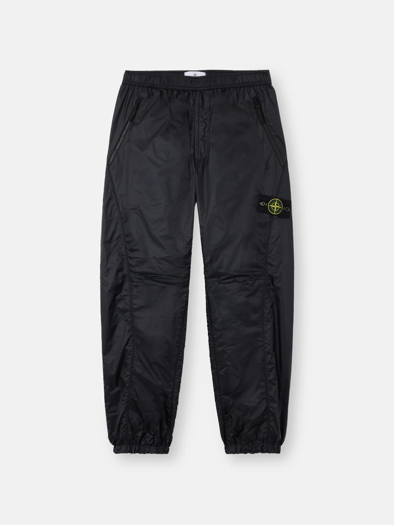 Technical pants in tear-resistant CORDURA® nylon ripstop, featuring zipper pockets, shaped knees, and an elasticated drawstring waistband. FABRIC RESEARCH AND TREATMENT Technical pants made from a high-tenacity 6.6 nylon ripstop by CORDURA® Advanced Fabrics. The semi-transparent fabric is lightweight yet robust, and known for its resistance to abrasion, tearing, and ripping. STYLE AND FIT Angled hand pockets with zipper. Angled back pocket with double snap. Stone Island badge on left leg. Shaped knees. Elasticated cuffs. Elasticated waistband with internal drawstring. Zipper fly. Loose fit. COMPOSITION AND CARE External Fabric: 100% Polyamide / Nylon Lining: 100% Polyamide / Nylon