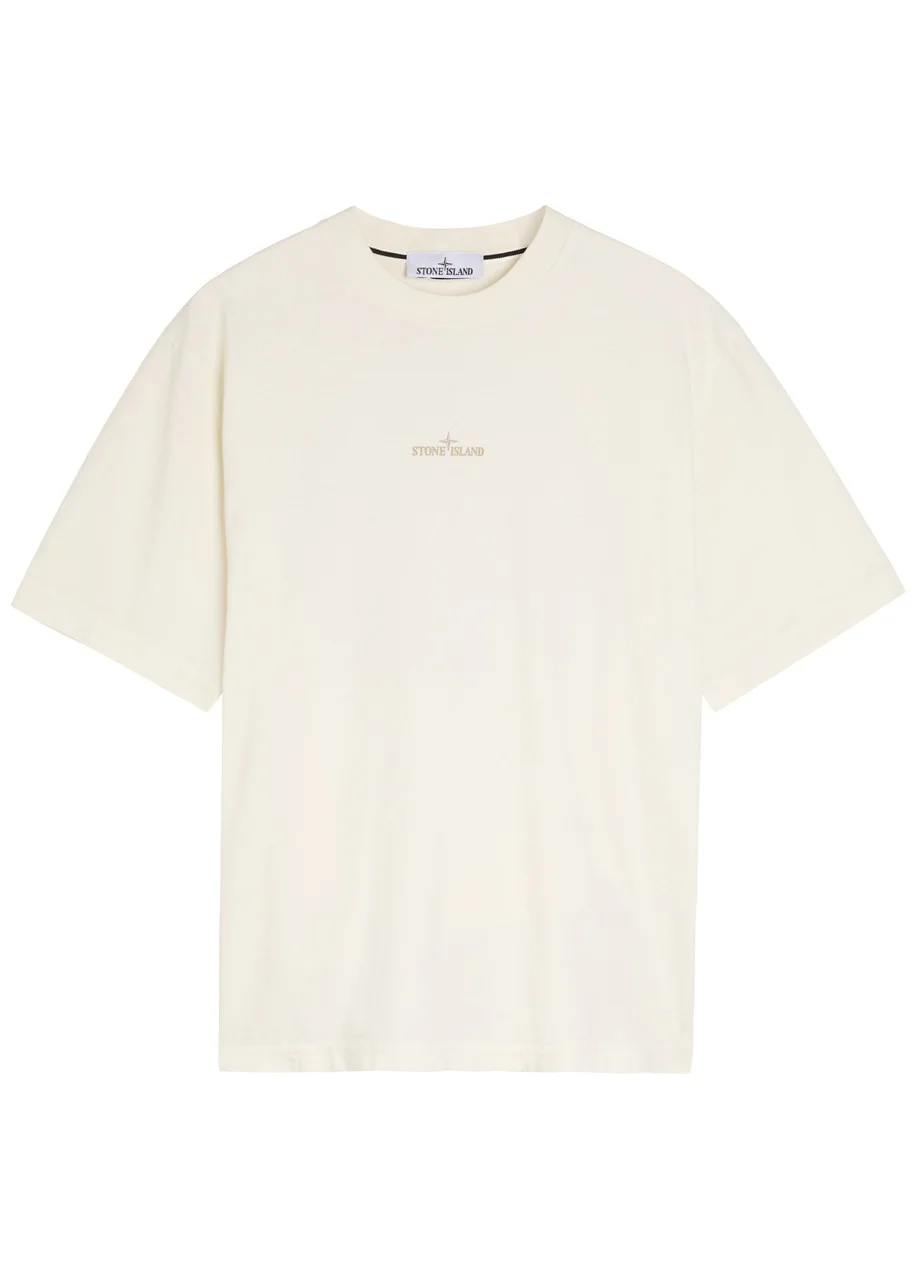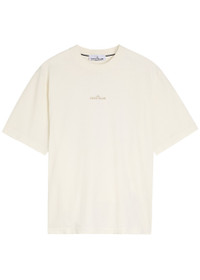 Info & Care Stone Island cotton T-shirt Ribbed crew-neck, designer print at front and back Slips on 100% cotton Machine wash Size & Fit Length shoulder to hem: 27.5 inches/ 70cm Midweight Relaxed fit Model is 6'1"/ 185cm, chest size 38 inches and wears a size medium