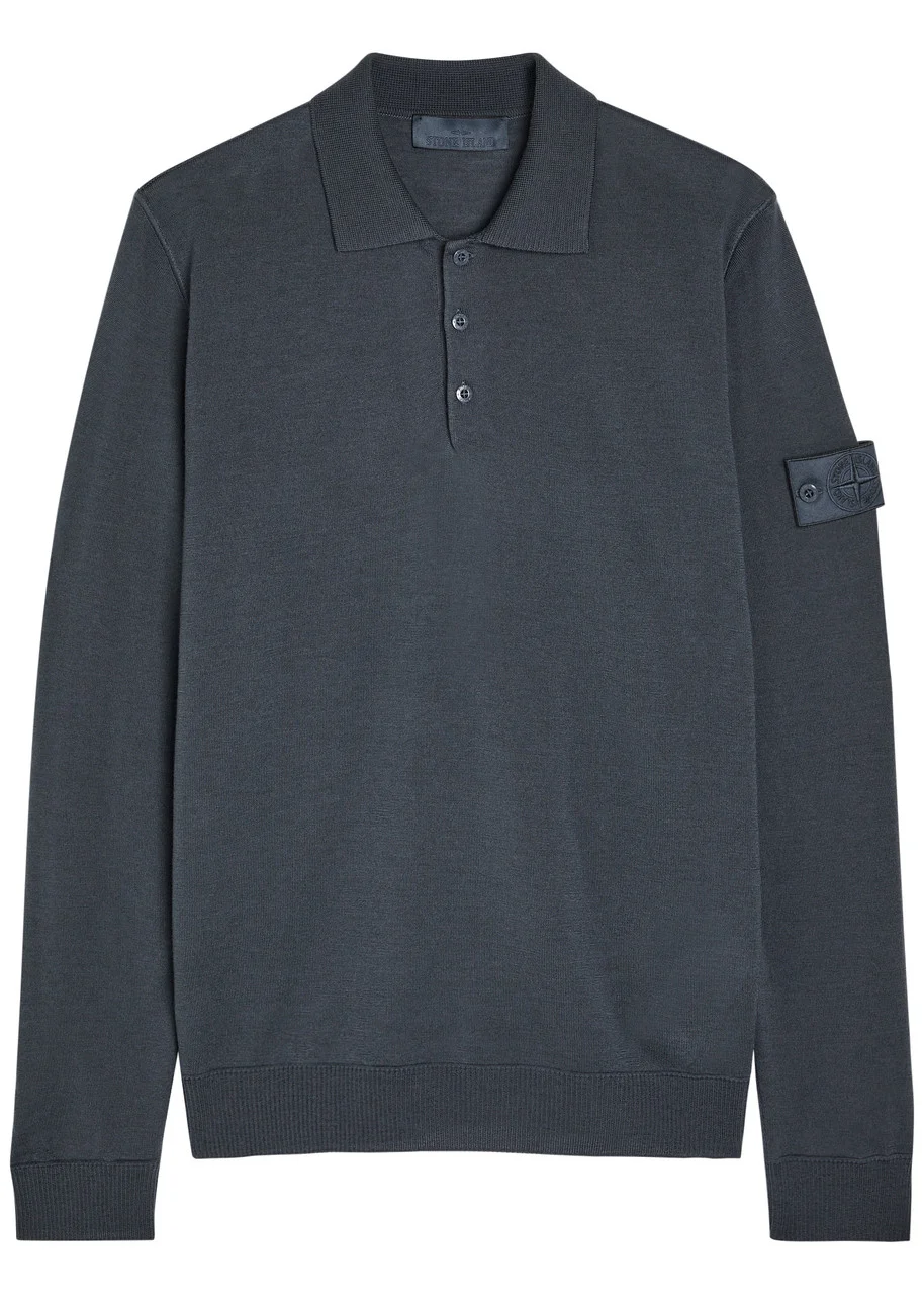 Info & Care Stone Island wool polo shirt Button-fastening neck, detachable designer plaque at sleeve, ribbed trims; Slips on; 100% wool; Hand wash; Size & Fit Length shoulder to hem: 26 inches/ 66cm Midweight Regular fit Model is 6'2"/ 188cm, chest size 38 inches and wears a size medium