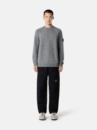 Knit crewneck sweater in mouline wool and nylon featuring raglan sleeves and ribbed trims. Gauge 3. FABRIC RESEARCH AND TREATMENT Knit crewneck sweater in mouline wool and nylon. Stockinette stitch. Gauge 3. STYLE AND FIT Ribbed neckline. Raglan sleeves. Stone Island badge on left sleeve. Ribbed cuffs and bottom band. Loose fit. COMPOSITION AND CARE 48% Virgin Wool 43% Polyamide / Nylon 9% Viscose / Rayon