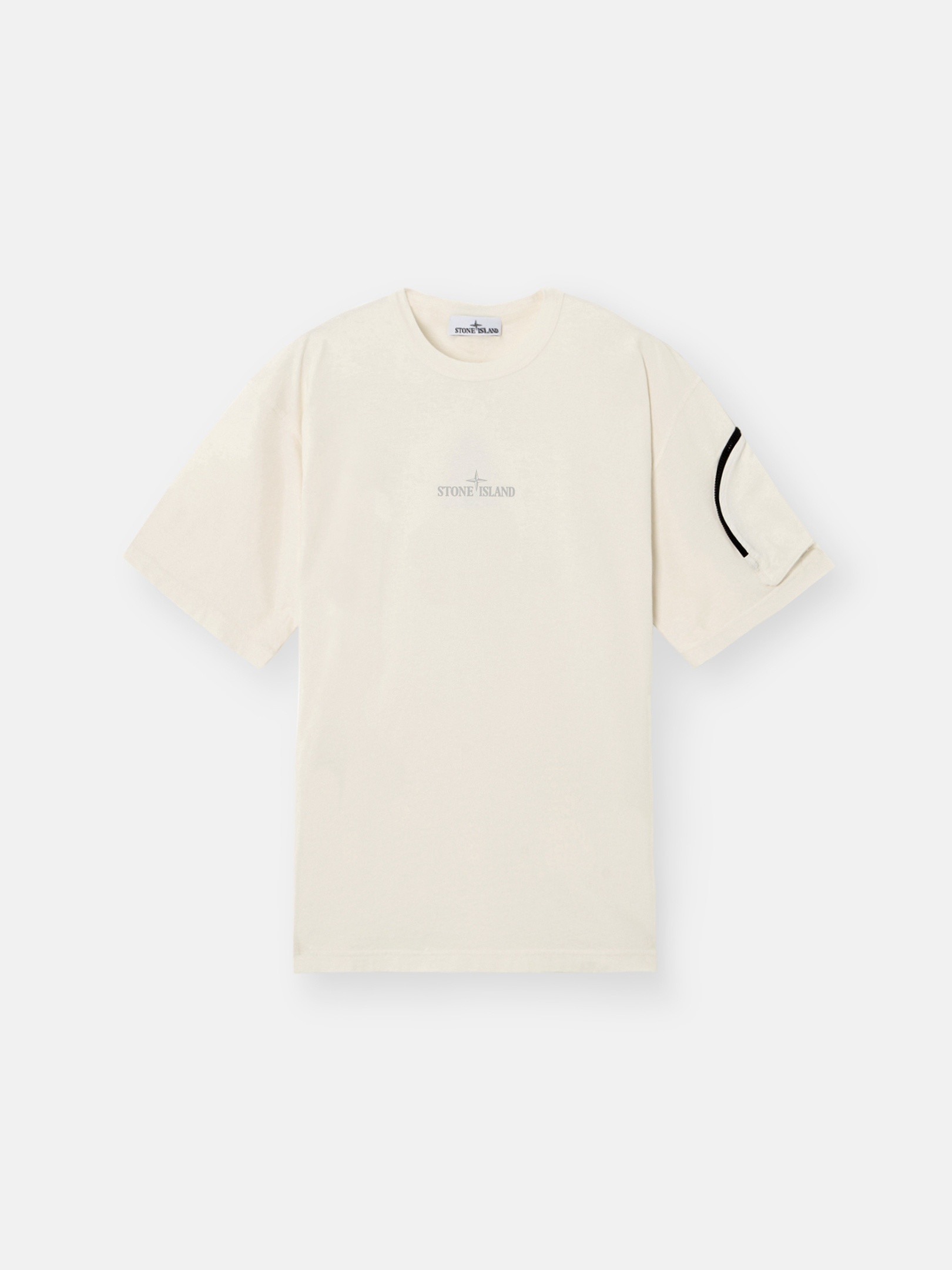 Short-sleeve T-shirt in combed organic cotton jersey with Stone Island logo print on the chest, overlock seams, and rounded bellows pocket. Garment dyed. FABRIC RESEARCH AND TREATMENT Short sleeve T-shirt in combed organic cotton jersey. Garment dyed. STYLE AND FIT Ribbed neckline. Stone Island logo print on center of chest. On the right, rounded bellows pocket in cotton fabric with zipper fastening. Overlock seams on shoulders and armholes. Regular fit. COMPOSITION AND CARE Garment: 100% Cotton. Ribbing: 100% Cotton