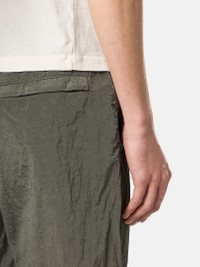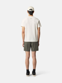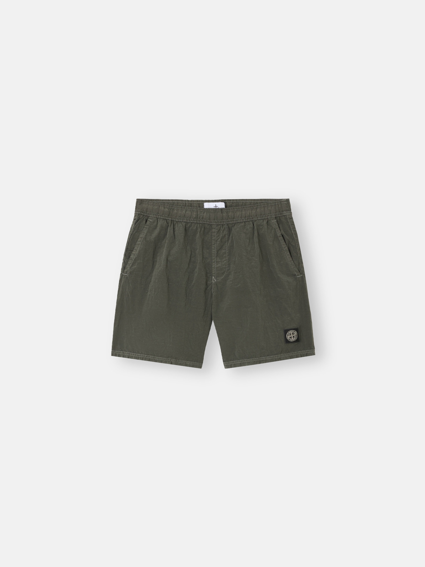 Mid-length swim trunks made from Stone Island's iconic Nylon Metal fabric with ECONYL® regenerated yarns, featuring Velcro pockets and inner mesh lining. Garment dyed with double-dye procedure. FABRIC RESEARCH AND TREATMENT Mid-length swim shorts made in a new responsible Stone Island iridescent Nylon Metal fabric. The evolution of this iconic fabric sees the use of ECONYL® regenerated yarns: the life-ended nylon, pre- and post-consumer, is recycled with a complex depolymerization process to create this fiber that features the same intrinsic characteristics of nylon from fossil raw material. The finished piece then undergoes an elaborate double-dye procedure. STYLE AND FIT Slanted hand pockets. One back pocket with hidden zipper fastening. Stone Island Compass patch logo on the left leg. Inner mesh. Elasticated waist with inner drawstring. Regular fit. COMPOSITION AND CARE External Fabric: 100% Polyamide / Nylon. Lining: 100% Polyamide / Nylon