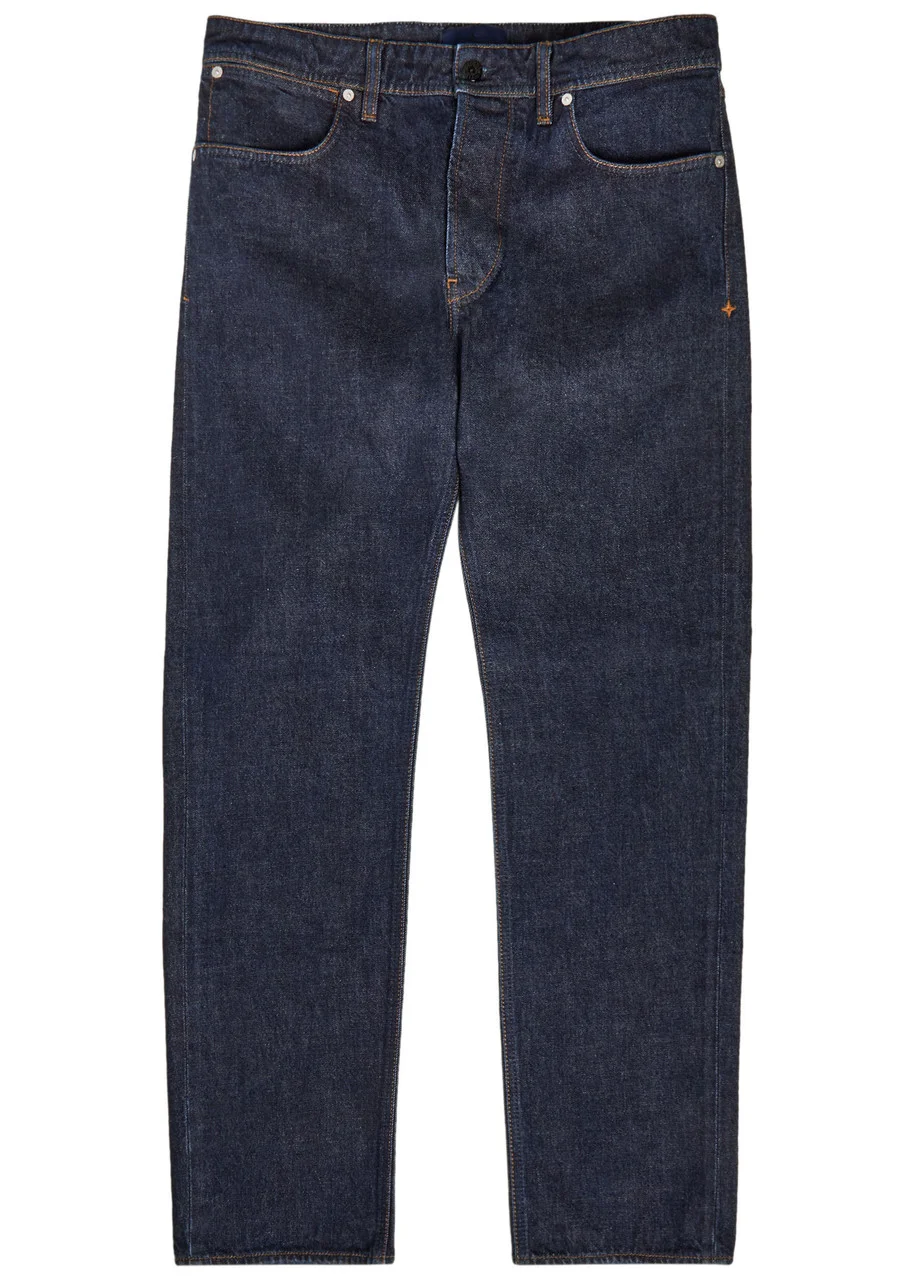Info & Care Stone Island denim jeans Mid-rise fit, straight-leg cut, belt loops, five pockets, logo embroidery at side, detachable designer plaque at back Partially concealed button fastenings at front 100% cotton; Machine wash cold inside out to avoid colour transfer Size & Fit Front rise: 10.5 inches/ 27cm Inside leg length: 32 inches/ 81cm Midweight Model is 6'1"/ 185cm and wears a size W32