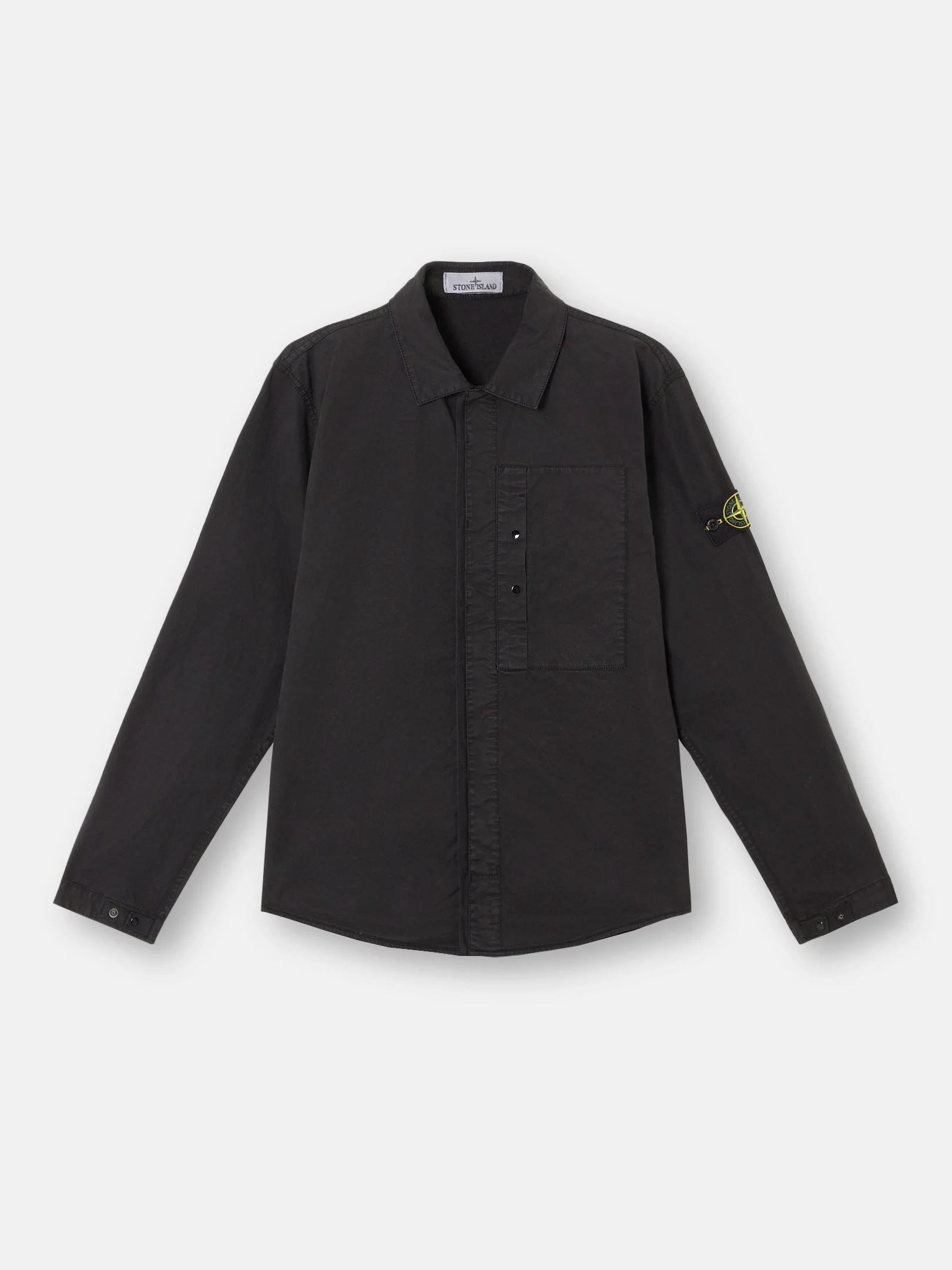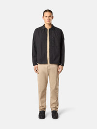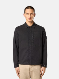 Overshirt in stretch Supima® cotton twill with snap chest pocket, adjustable cuffs, and double placket with hidden snap fastening. Garment dyed. FABRIC RESEARCH AND TREATMENT Overshirt made of stretch Supima® cotton twill, made with mercerized Supima® cotton yarn, elasticated in the weft. Supima® - Superior Pima - is the guarantee certificate for the US origin of Pima cottons. This is the noblest species among cottons, due to the greater length, uniformity and strength of the fibers. Garment dyed. STYLE AND FIT One patch chest pocket with vertical entrance and snap fastening. Stone Island badge on the left sleeve. Tightening snaps on cotton tape at cuffs. Rounded hemline. Double placket with hidden snap fastening. Regular fit. COMPOSITION AND CARE 97% Cotton 3% Elastane / Spandex