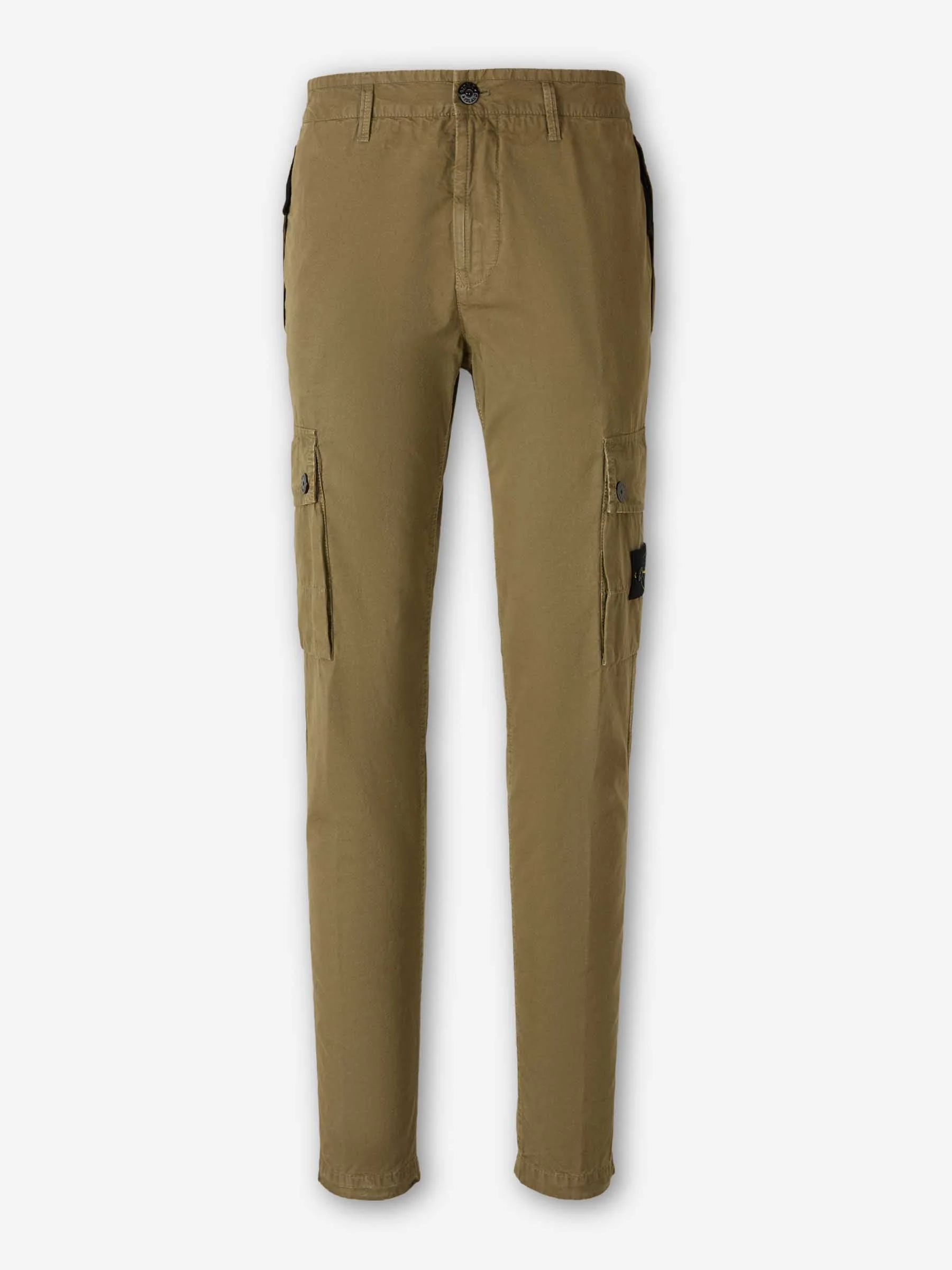 SKU: 521-003542 01 BRAND ID: L1S153100053 trousers By Stone Island • Regular fit • Made from cotton twill • Front zip and button closure • Slanted side pockets, cargo pockets with flaps, and a back pocket • Mid-rise waist with belt loops • 18cm straight bottom • Detail of a compass patch on the side • Composition: 100% cotton • Made in: Romania