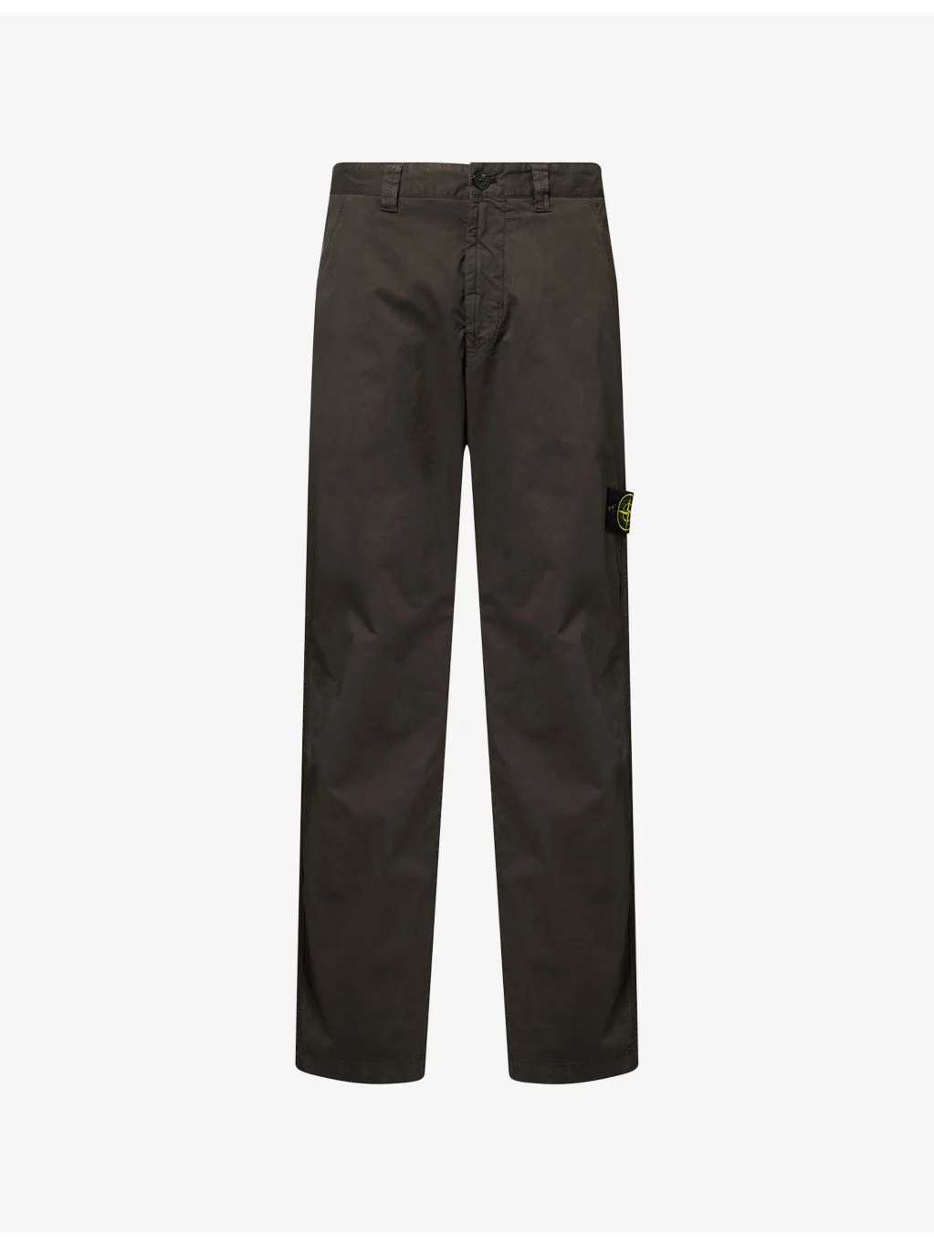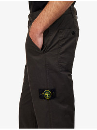 PRODUCT DETAILS - Stone Island cotton trousers - 97% cotton, 3% elastane - Button and zip-fly fastening - Straight fit, belt loops, side pockets, back snap patch pockets, brand patch on leg - Machine wash mild - Model is 6ft 2in/1.88m and wears a size UK 30 - Midweight, non-stretch Ref: R04484242