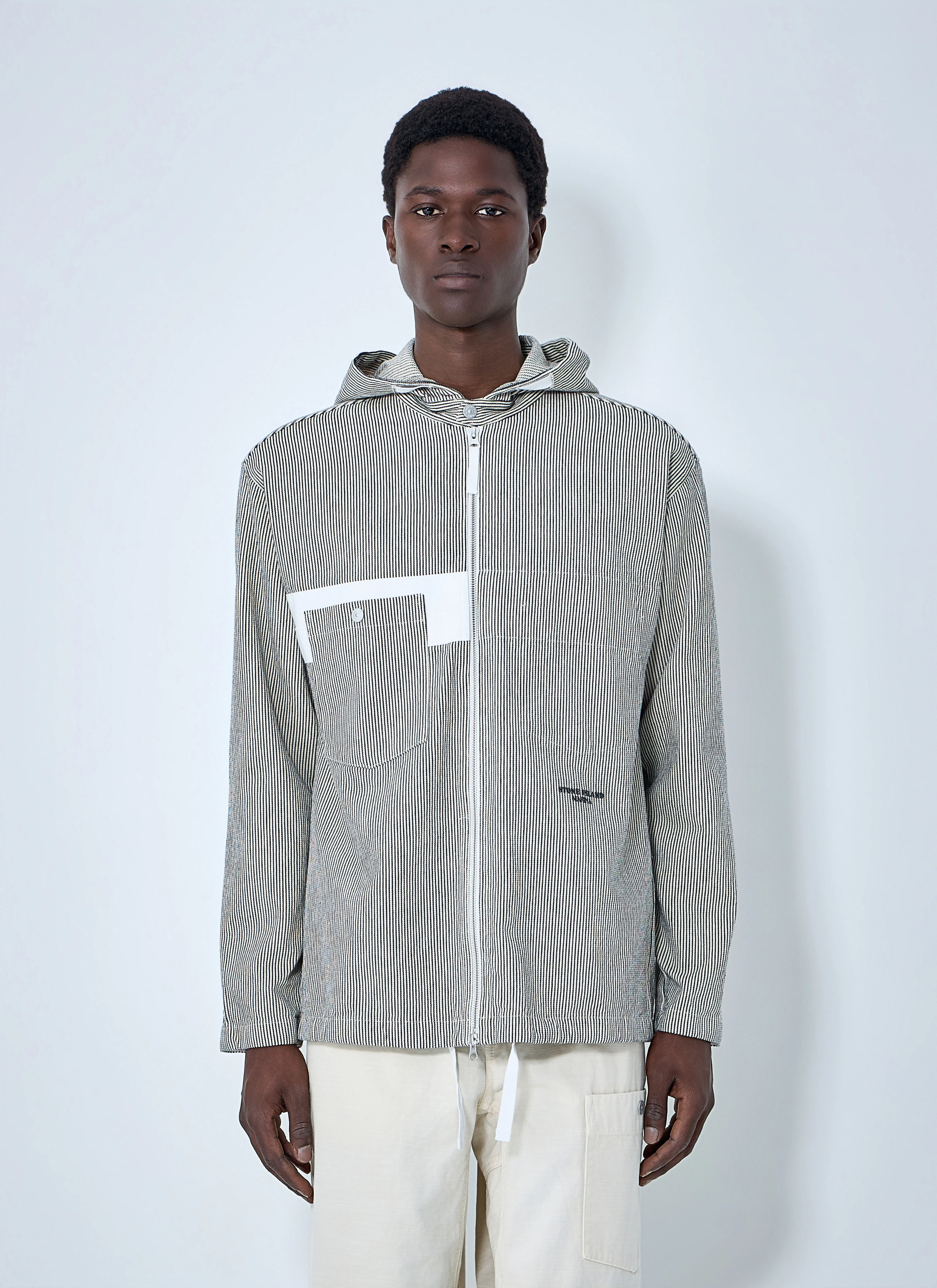 Zip-front hooded jacket in striped cotton weave. - Drawstring hood - Zip fastening - Chest patch pocket - 100% Cotton - Color: Navy - Code: L1S151200030 S0X30 V0020