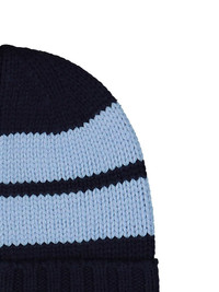 striped-pattern beanie Highlights - Navy blue - Striped pattern - Logo embroidery - Ribbed cuff - Folded brim Made in Italy Composition Fabric 100% Washing instructions Read Manufacturer Guidelines
