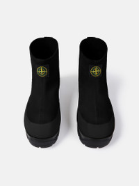 Ankle boot in suede leather featuring a Compass logo patch on the front, rear tape loop, and Vibram® sole for lightness, grip, and shock absorption. FABRIC RESEARCH AND TREATMENT Ankle boot in suede calf leather. STYLE AND FIT Stone Island Compass logo patch on front. Tape loop on back. Contour rubber rand. Vibram® expanded rubber compound sole, allowing lightness and high shock absorption with excellent grip and durability for city life. COMPOSITION AND CARE Upper: Split Leather (Calfskin); Synthetic Material. Lining: Leather (Cowhide). Insole: Leather (Cowhide). Sole: Other Materials