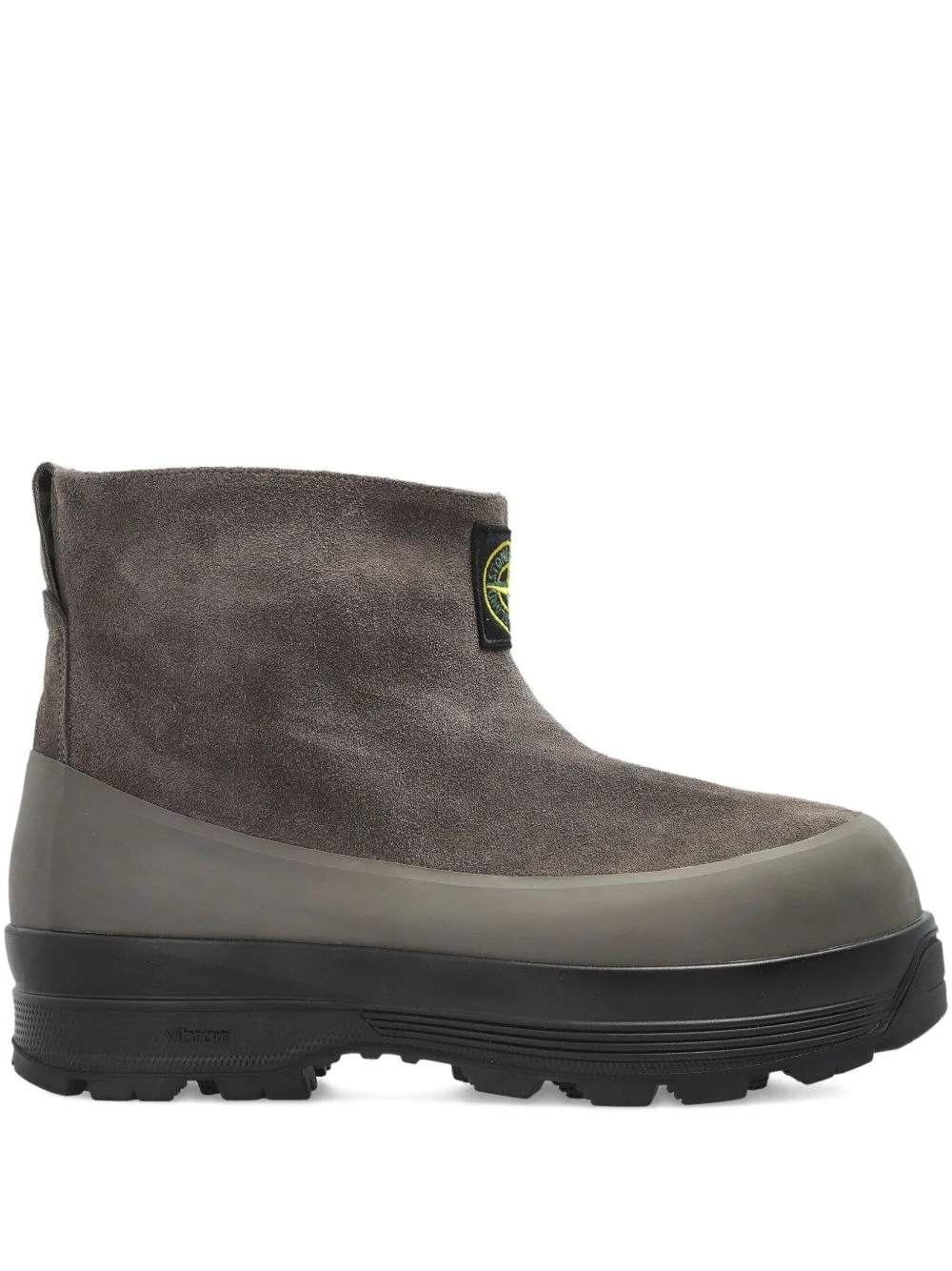 suede logo-patch ankle boots Highlights - Grey - Suede upper - Rubber sole - Round toe - Logo patch Made in Italy Composition Outer: Suede 100%, Polyurethane 100% Lining: Leather 100% Sole: Rubber 100%