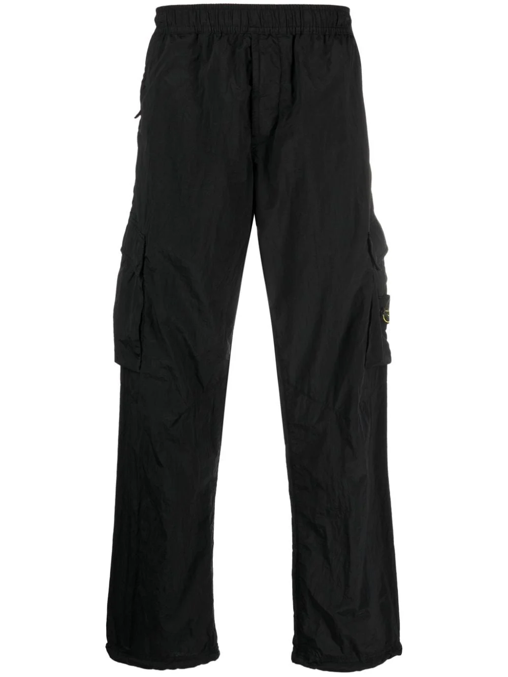 tapered cargo trousers Highlights - Black - Econyl® - Crinkled finish - Signature detachable compass badge - Mid-rise - Tapered leg - Elasticated waistband with internal drawstring - Two side inset pockets - Two side cargo pockets - Rear welt pocket Imported Composition Outer: Polyamide 100% Lining: Polyamide 100% SIZE & FIT Model measurements Height 6 ft 2 in(1.87 m) Bust/Chest 36.41 in(92.5 cm) Hips 35.43 in(90 cm) Waist 29.52 in(75 cm) FittingInformation Designed for a relaxed tapered leg, allowing a comfortable loose fit above the knee with a closer fit towards the calves The internal drawstring at the hem allows for fitted preferences at the ankle Made from a lightweight non-stretch fabric This piece fits true to size – take your usual size Washing instructions Machine Wash