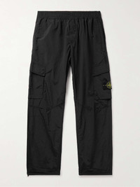 Stone Island is known for its hardwearing fabrics and utilitarian designs. These cargo trousers are cut from ECONYL® Nylon Metal that's produced from regenerated fibres and garment-dyed for an iridescent finish. They're lined with breathable mesh and have toggle fastenings at the hems so you can taper the ankles. Size & Fit - Fits true to size. Take your normal size - Tapered leg, low-crotch style - Adjustable at the waist - Lightweight, non-stretchy fabric - Model is shown wearing a 32 - Model measures: waist size 32, height 6'2"/ 188cm Details & Care - Black ECONYL® Nylon Metal - 100% nylon; lining: 100% polyamide - Machine wash