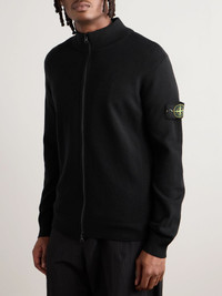 Stone Island's official campaigns spotlight long-time fans, including Oasis frontman Liam Gallagher and NBA Hall of Famer Carmelo Anthony. Part of the AW25 collection, this zip-up cardigan is knitted from a 12-gauge wool-blend and features reverse-stitch detailing along the shoulders. Small to size. See Size & Fit notes. Size & Fit - Fits small to size. Take one size larger than normal - Designed for a slightly loose fit - Mid-weight knit - Model is shown wearing a L - Model measures: chest 38"/ 96cm, height 6'0"/ 183cm Details & Care - Black wool-blend - Two-way zip fastening - 88% wool, 12% polyester - Hand wash
