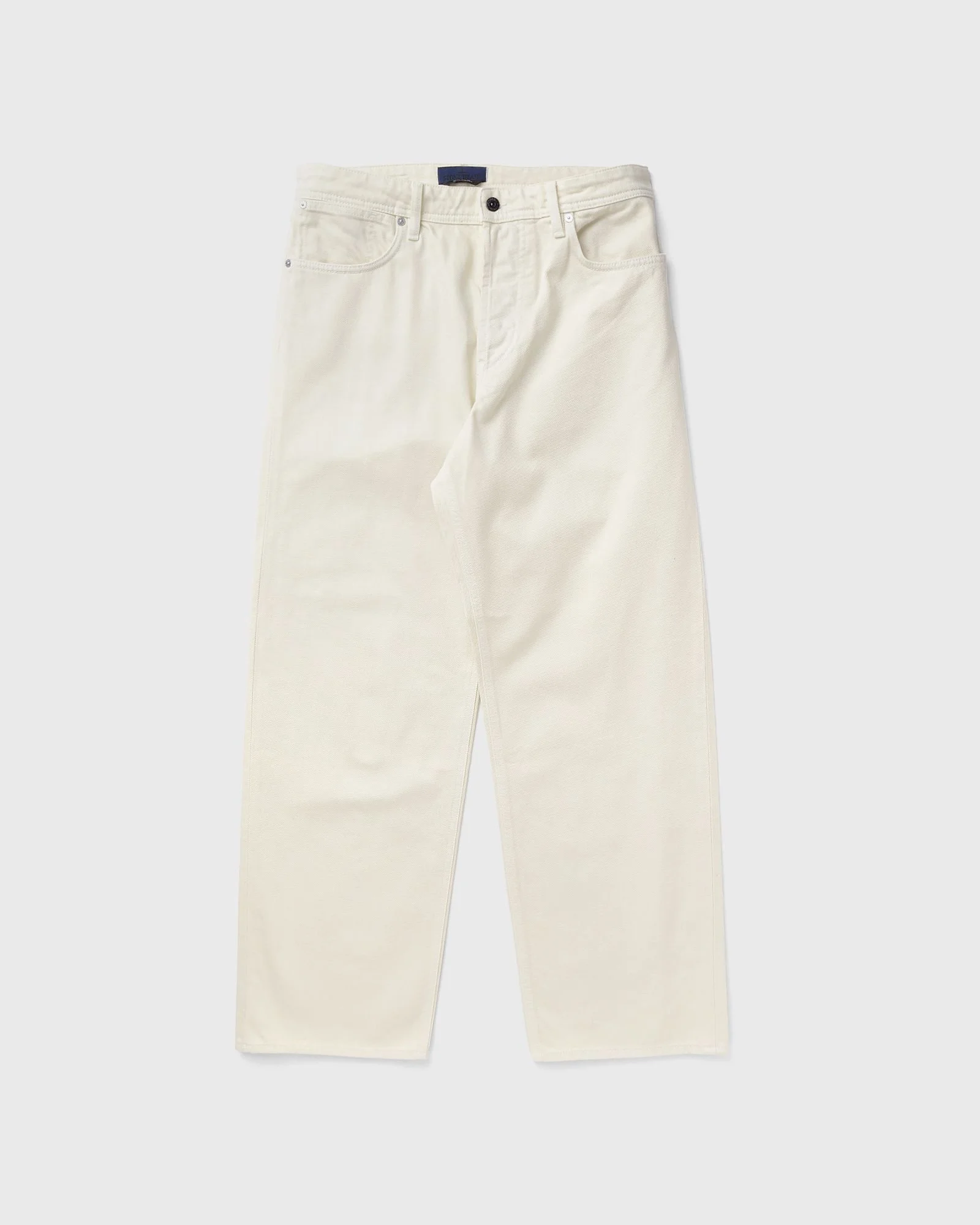 The Stone Island five-pocket jeans are made from lightweight 13-ounce denim with a compact 3/1 twill weave, which creates the classic diagonal denim pattern and ensures high durability. Piece dyeing using special formulas gives each pair of jeans a unique look. - Curved side pockets with a coin pocket on the right side and small star embroidery below the left pocket - Stone Island Denim Research badge with metal buttons on the back waistband - Patch back pockets with reinforced lining at the bottom and horizontal stitching - All seams in a contrasting color - Concealed button fly with a visible black button at the top - Loose fit Article number: L1S14J100006S0J24.V0093 Gender: men Color: IVORY Material: 100% Cotton