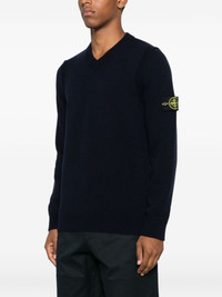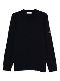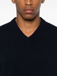 v-neck logo-patch sweater Highlights - Blue - V-neck - Long sleeves - Ribbed cuffs - Ribbed hem - Logo patch Imported Composition Wool 80%, Polyamide 20% SIZE & FIT Model measurements Height 6 ft 1 in(1.85 m) Bust/Chest 38.58 in(98 cm) Hips 37 in(94 cm) Waist 30.31 in(77 cm) Washing instructions Hand Wash