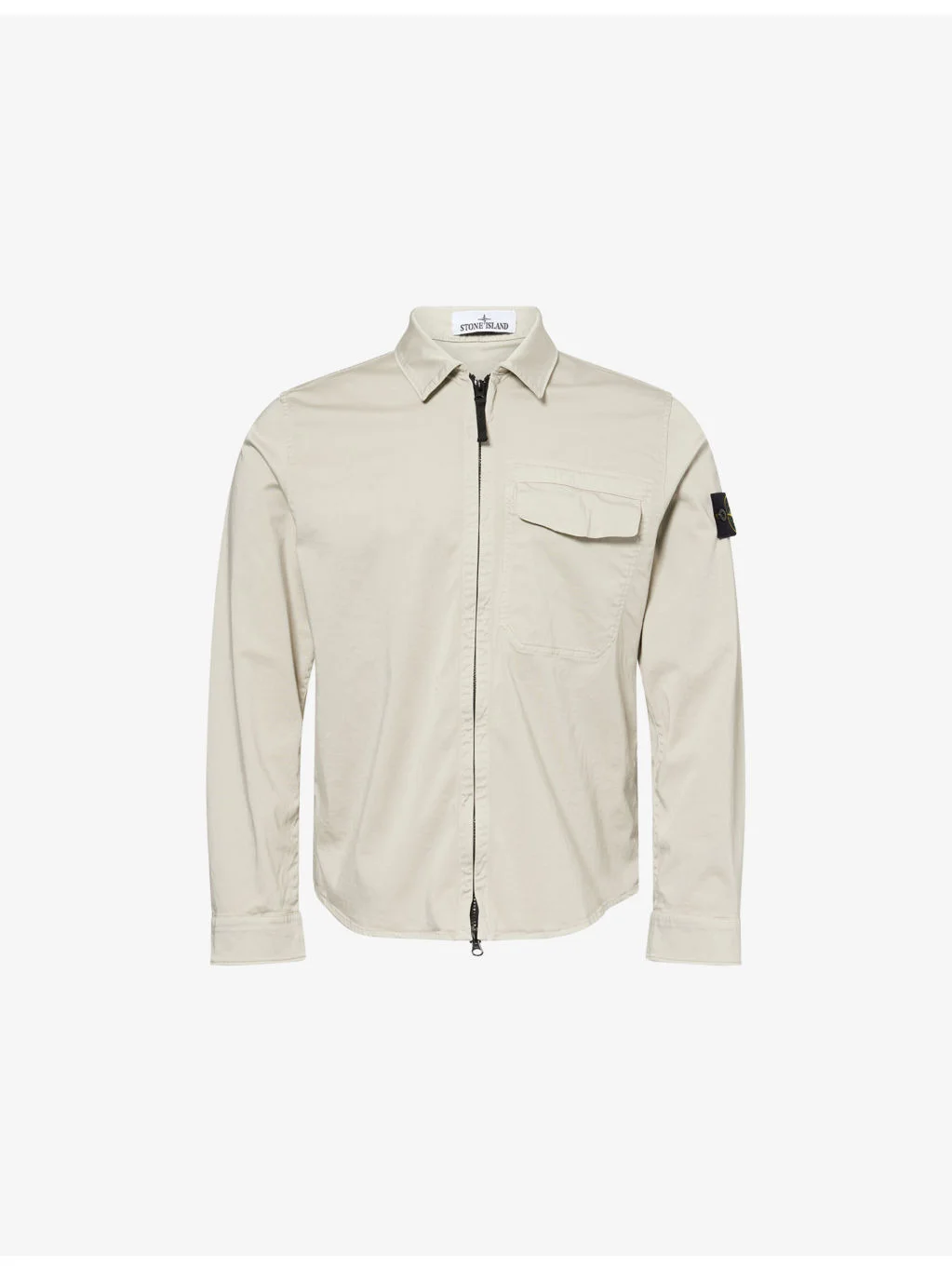PRODUCT DETAILS - Stone Island stretch-cotton overshirt - 98% cotton, 2% elastane - Concealed zip fastening at front - Spread collar - Buttoned cuffs - Regular fit, collar, long sleeves, buttoned badge at sleeve, buttoned pocket at front, straight yoke at back, curved hem - Machine wash at 30°C - Made in Tunisia - Size medium: length 25in / 65cm, chest 40in / 102cm - Model is 6ft 2in/1.88m and wears a size medium - Lightweight, stretchy Ref: R04564867