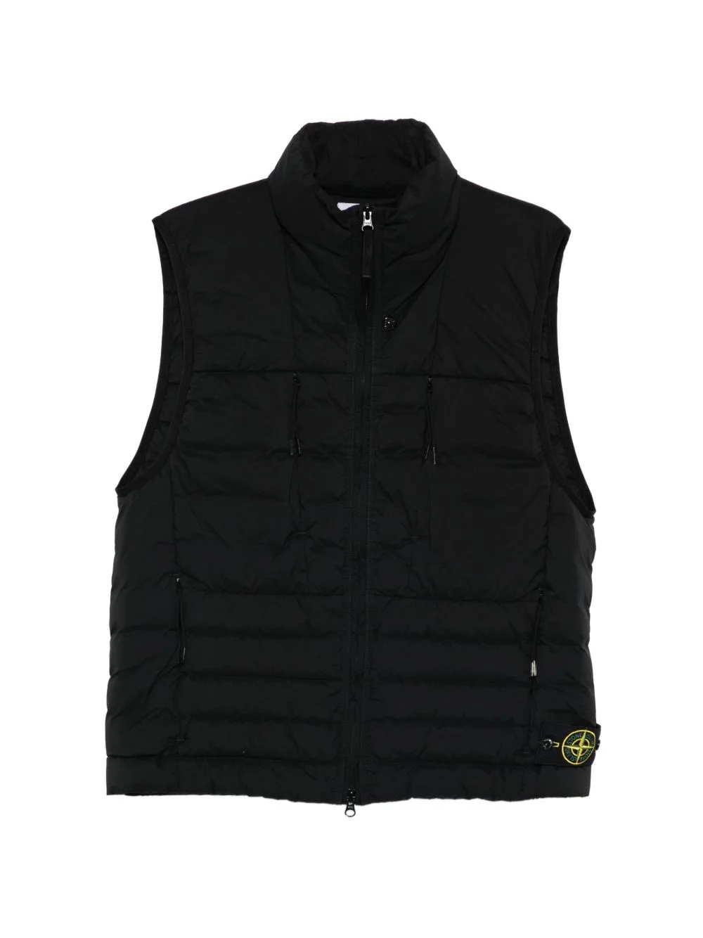 zip waistcoats Highlights - Black - Zip closure - Logo patch - Sleeveless - Chest welt pocket - Quilted finish Imported Composition Outer: Polyamide 86%, Spandex/Elastane 14% Lining: Duck Down 90%, Polyamide 86%, Elastane 14%, Duck Feathers 10% Washing instructions Machine Wash